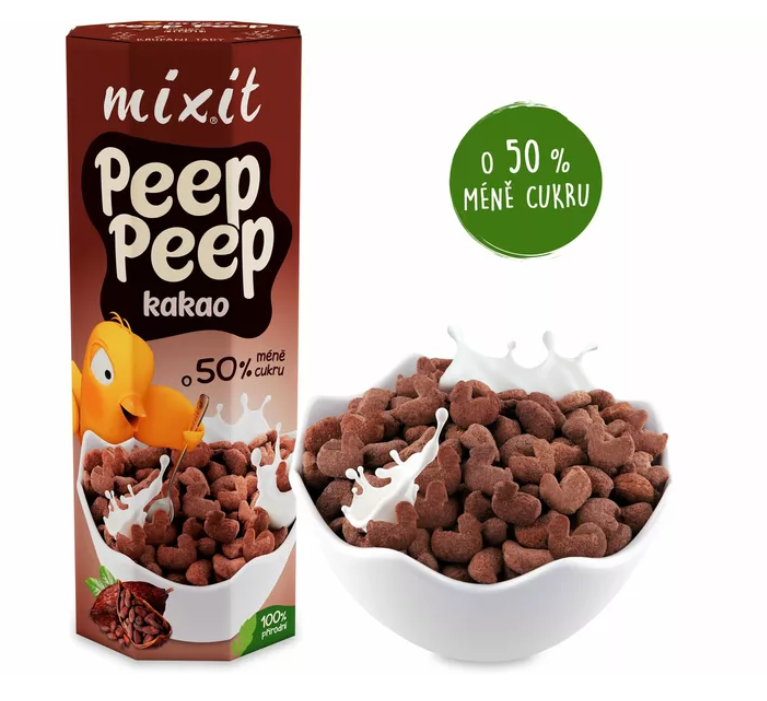 Peep, peep! Nejen ptáčci v tubuse si cvrlikají, že máme kakaové snídaňové cereálie! Ty naše Mixit mají o 50 % méně cukru v porovnání s podobnými produkty, a osladili jsme je datlovým sirupem, který je cenným zdrojem hořčíku. Nechybí porce vlákniny, aby bylo v bříšku jako v pokojíčku. Ve tvaru ptáčka Mixiťáčka jsou připraveny probudit i ty nejmenší ospalce.
