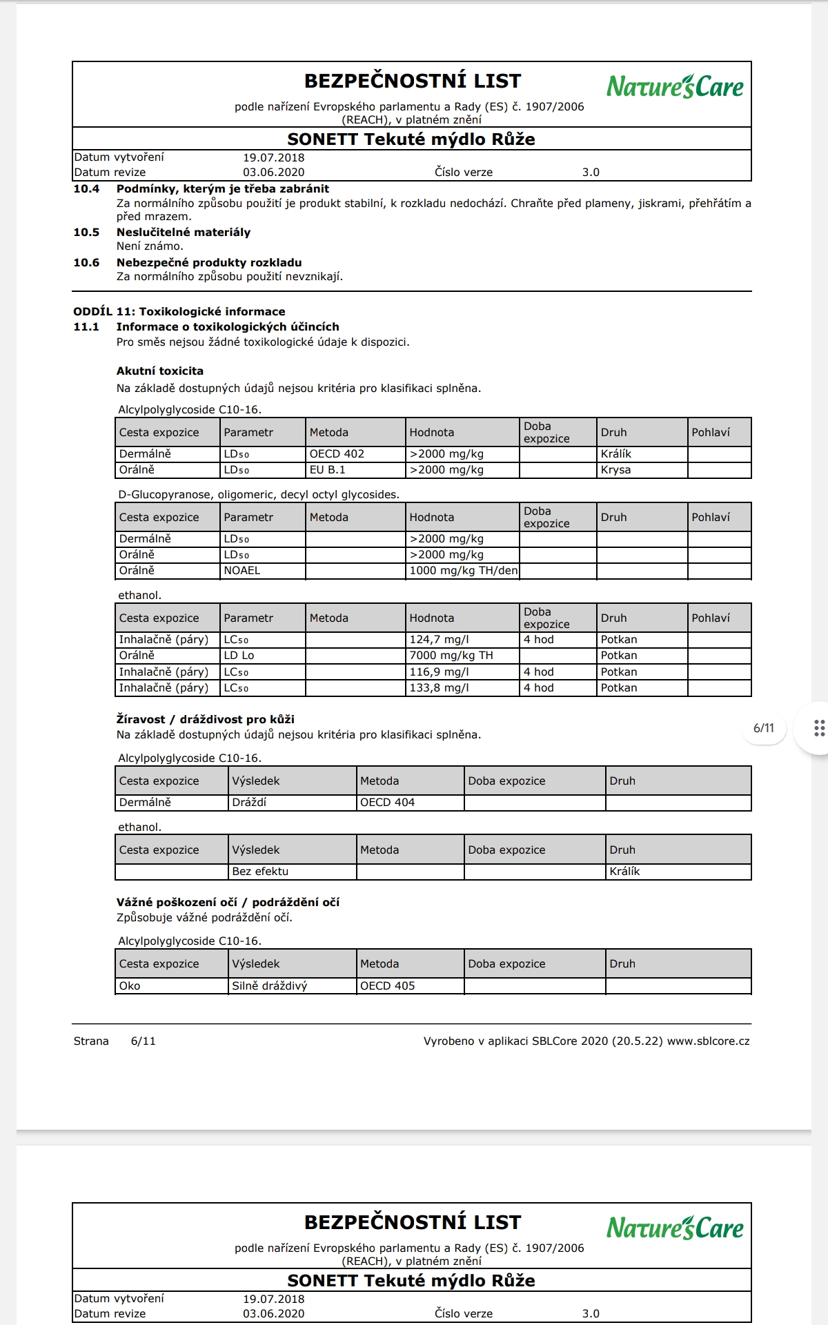 Biologické odbourávání: Mýdlo ztrácí okamžitě po použití, v bezprostřední reakci s vápníkem obsaženým vždy v odpadní vodě, své vlastností snižující povrchové napětí (primární odbourávání). Vápenaté mýdlo je následně ze 100 % rozkládáno na oxid uhličitý a vodu (sekundární odbourávání). Cukrové smáčedlo a deriváty kokosového oleje jsou získávány chemickou konverzí pomocí kyselin ze surových materiálů čistě rostlinného původu a kompletně si zachovávají svou přirozenou strukturu. Pro mikroorganismy je proto snadné je kompletně rozložit. Etanol je do přírodního cyklu navrácen během několika hodin.