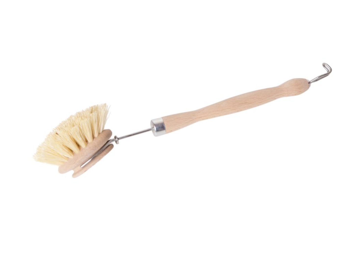 Kartáč na nádobí vyrobený z PEFC certifikovaného dřeva, kovu a štětin z agáve s vyměnitelnou hlavicí. Pro pohodlné mytí nádobí, poradí si i s připálenými hrnci a pánvemi.