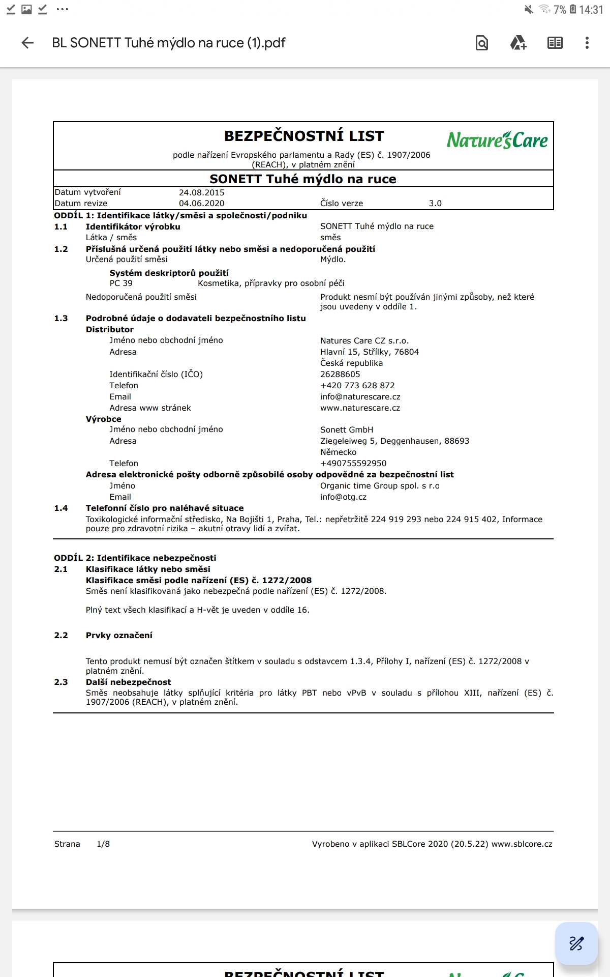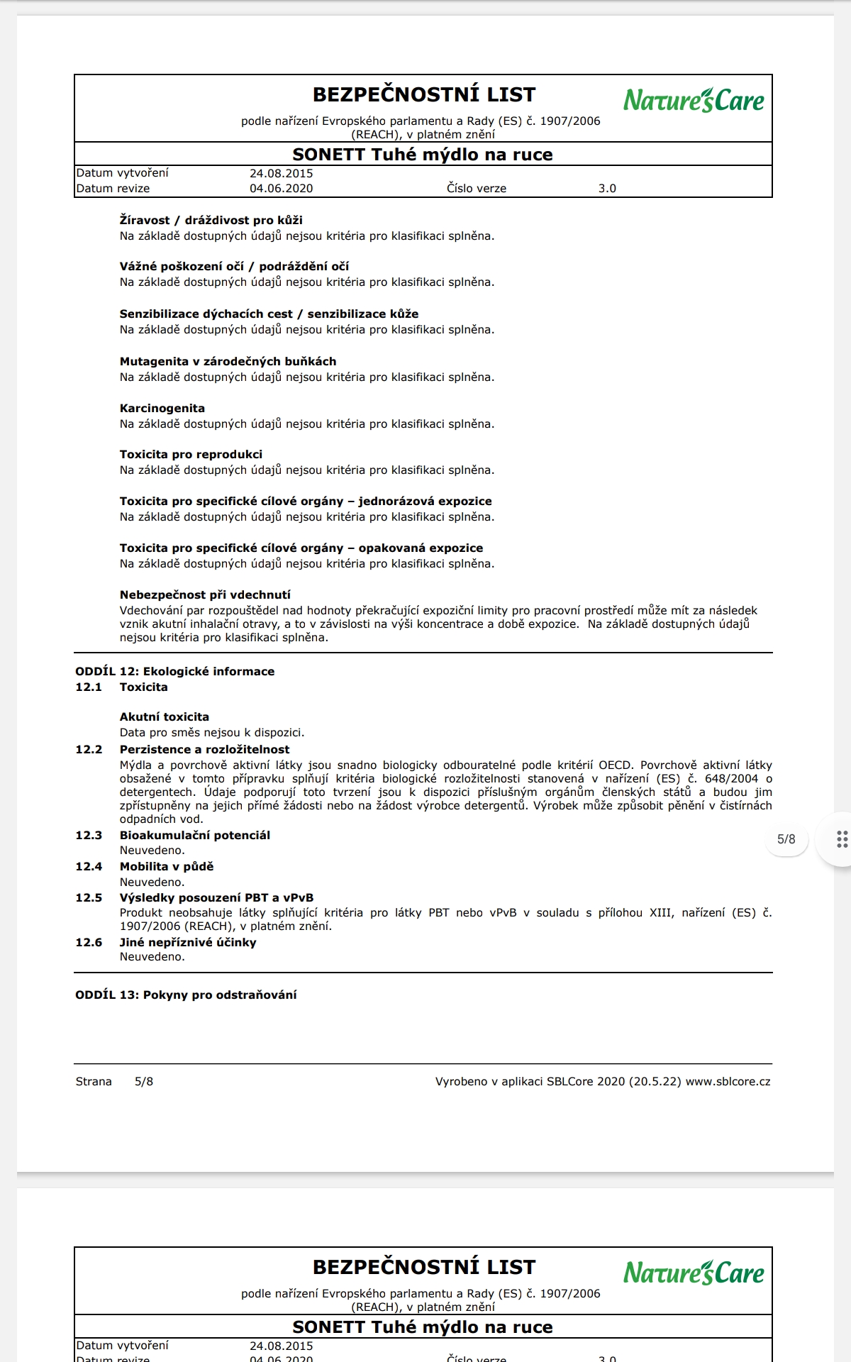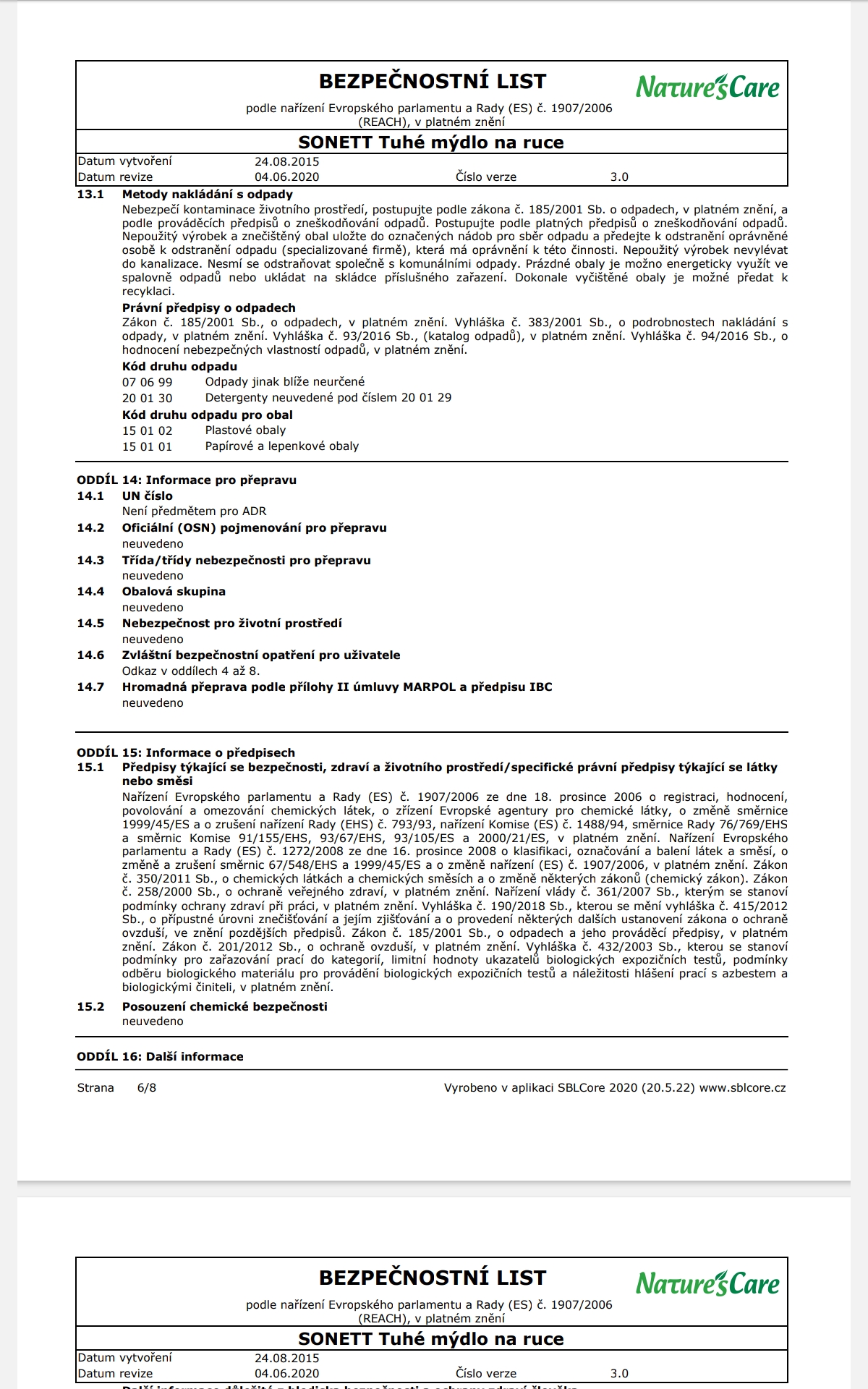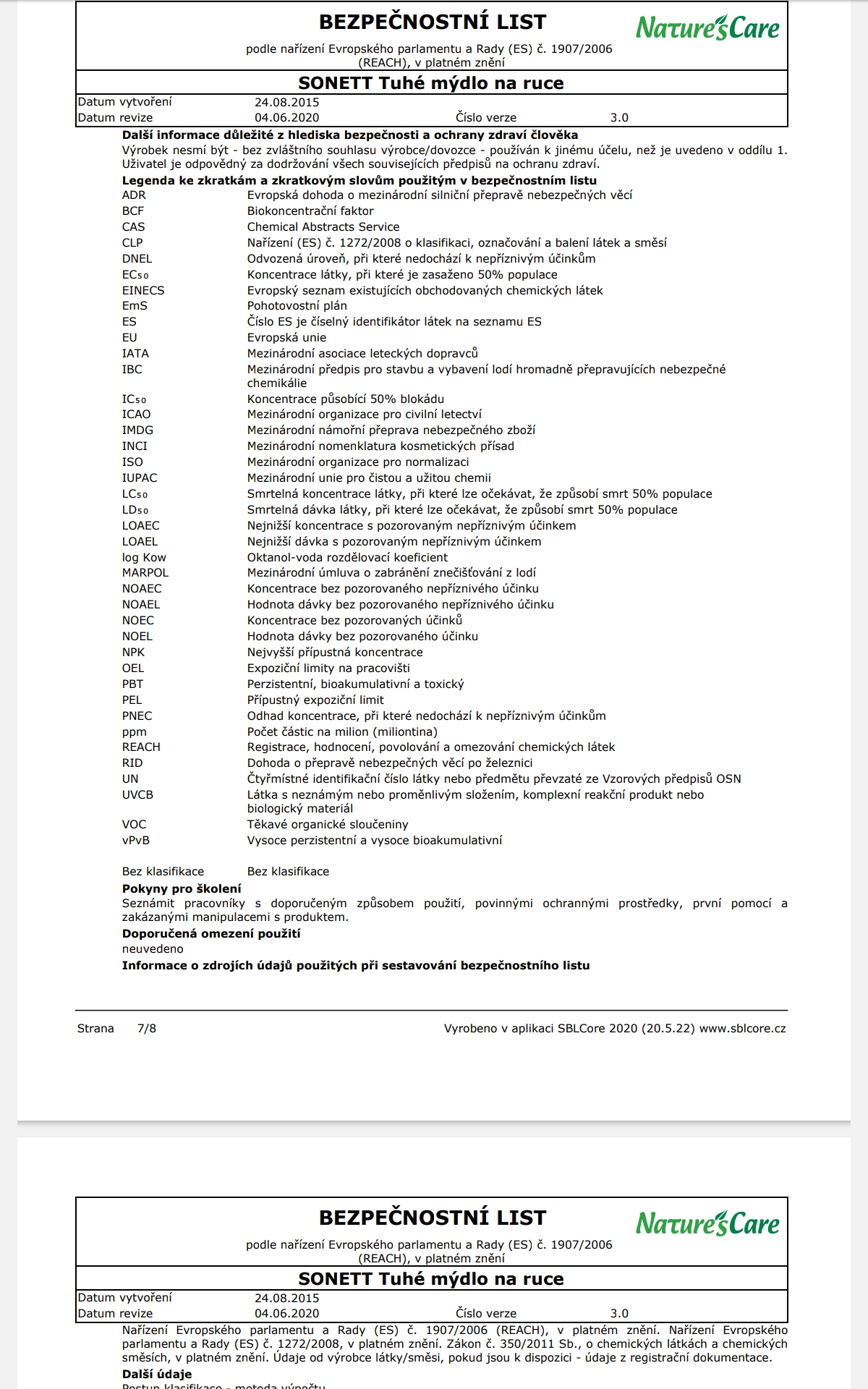 • Sonett odmítá používat přísady škodlivé pro životní prostředí a pro zdraví člověka.