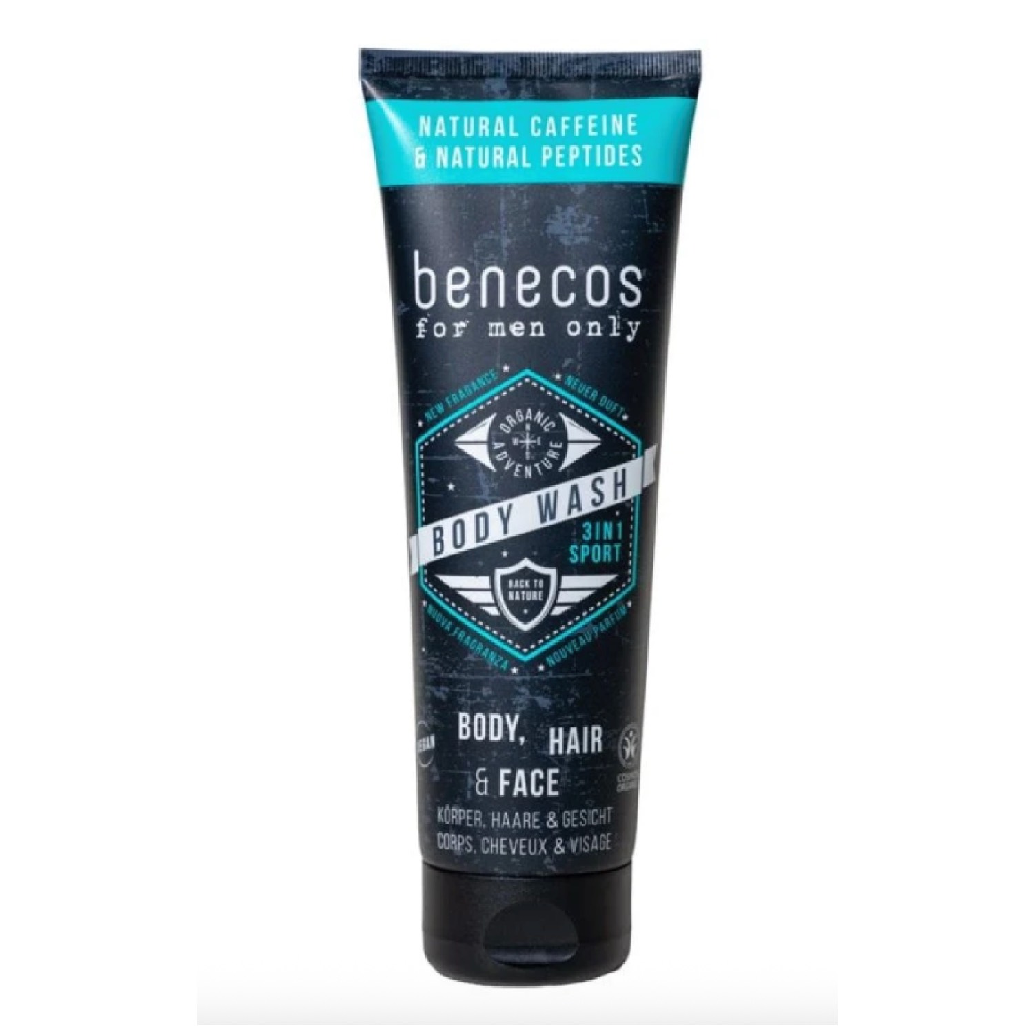 Sprchový gel 3v1 Sport vám dodá extra dávku síly a svěžesti nejen po sportu. Osvěžující vůně probudí tělo i mysl a složení s regionální bio jablečnou šťávou a bio olejem z kávových zrn se postará o šetrné mytí.