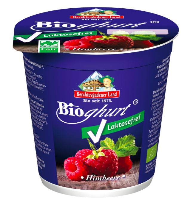 bílý jogurt** (plnotučné mléko**, živá kultura), malinové pyré* 10 %, řepný cukr**, tapiokový škrob*, zahuštěná šťáva z červené řepy* jako barvivo, zahušťovadlo karobová moučka*, enzym laktáza. * = bio, ** = bio a fair. Obsah fair trade složek 86 %. Obsah tuku v mléčné složce 3,9 %.