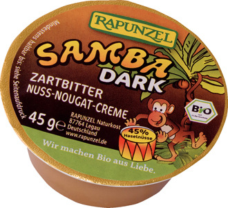 Malá vanička výjimečné varianty oblíbené pomazánky SAMBA bez mléka s vyšším obsahem kakaa. Obsahuje 45 % šetrně pražených mletých lískových oříšků a 15 % kakaa. Slazená je sušenou třtinovou šťávou rapadura a přírodním třtinovým cukrem a ovoněná pravou Bourbon vanilkou. Fair trade palmový olej pochází z Ghany, kde jsou v rámci projektu palmy vysazovány s ohledem na životní prostředí a pro získání nových plantáží nedochází k odlesnění. SAMBA DARK je výbornou volbou pro milovníky hořké čokolády, vegany a pro ty, kteří se vyhýbají mléku. Je vynikající na pečivo, do desertů, ke slepování cukroví a piškotů, na pečení i přímé mlsání. Nejlépe chutná dobře vychlazená.