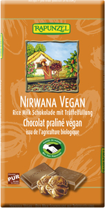 Čokoláda pro ty, kteří se vyhýbají mléku, ale nemají rádi klasickou hořkou čokoládu. Nirwana je tenká slupka hořké čokolády, naplněná luxusním nugátovým krémem bez palmového tuku. Je vyráběna ve Švýcarsku tradiční metodou dlouhého konšování, díky kterému plně vynikne zprvu skrytá bohatá chuť kakaa a čokoláda získá jemnou a hebkou konzistenci. Slazená je sušenou třtinovou šťávou rapadura a přírodním třtinovým cukrem Cristallino a neobsahuje mléko. Je tedy vhodná pro vegany. Výrobek pochází z fair trade projektu HAND IN HAND. Fair trade čili spravedlivý obchod garantuje farmářům z rozvojových zemí spravedlivou odměnu a zakazuje otrockou či dětskou práci.