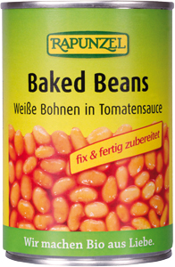 bílé fazole* 55 %, voda, rajský protlak* 5 %, cukr*, mořská sůl, ocet z bílého vína*, kukuřičný škrob*. Suroviny s * pocházejí z kontrolovaného ekologického zemědělství.