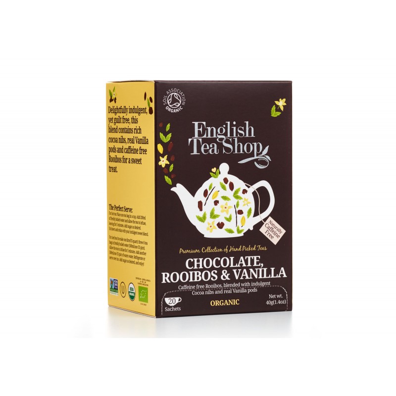 Tato bezkofeinová směs rooibosu, čokolády a vanilky je bohatá na antioxidanty. Rooibos (produkt ekologického zemědělství z Jižní Afriky) smíchaný s vanilkovými lusky a bohatou tmavou čokoládou pro absolutně mimořádný požitek.