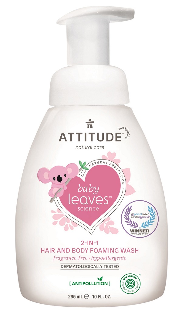 Věděli jste, že pokožka miminek není ještě plně vyvinutá až minimálně do 1 roku věku? Proto vznikl šampon a tělové mýdlo ATTITUDE, které je nabité přírodními složkami jako jsou listy z borůvky a semena moringy. Je ideální především pro citlivou a jemnou pokožku miminek. Kombinace šamponu a tělového mýdla usnadní čas koupání.