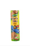 Křupavé pečené sušenky jsou vyrobeny z organické špaldové mouky, mají jemně ořechovou příchuť. Jsou naplněny jemným kakaovým krémem, který jim dodává lahodnou chuť čokolády. Sendvičové sušenky jsou vhodné ke kávě, čaji nebo mléku. Mají křupavou čokoládovou chuť.