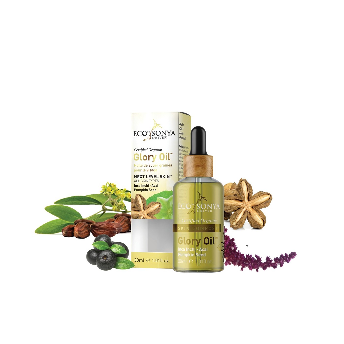 Glory Oil jako druhý produkt řady Organic Skin Care od Eco by Sonya využívá fenomenální hojivé účinky organických olejů ze semen, které spolu v kombinaci pleť léčí, zklidňují, snižují známky stárnutí a pomáhají obnovit rovnováhu vlhkosti pokožky.