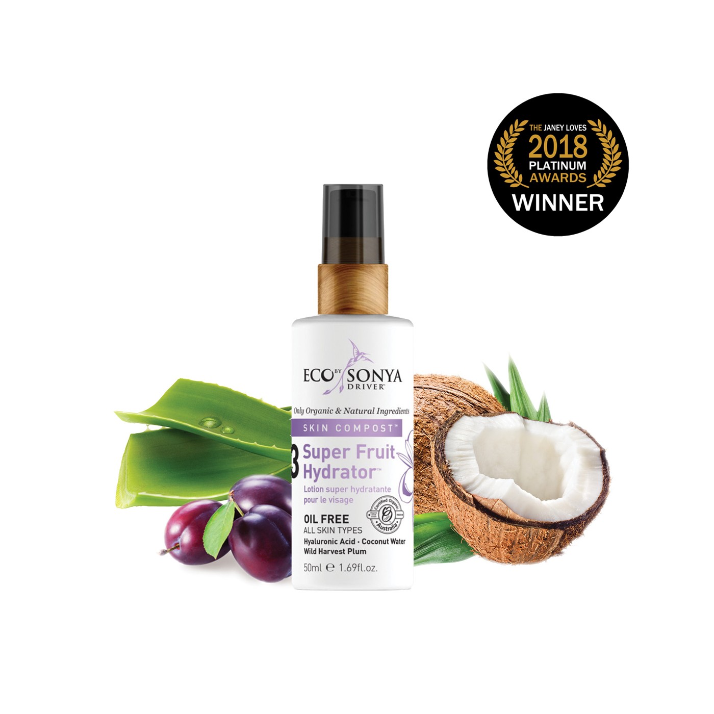 Organic Aloe Vera Leaf Juice*, Natural Glycerin (Vegetable Derived)**, Natural Coco-caprylate (Plant Derived)**, Natural Isoamyl Laurate (Vegetable Derived)**, Natural Glyceryl Stearate Citrate (Vegetable Derived)**, Natural Polyglyceryl-3 Stearate (Vegetable Derived)**, Natural Dicaprylyl Carbonate (Vegetable Derived)**, Organic Shea Butter*, Water**, Natural Behenyl Alcohol (Rapeseed Ferment)**, Organic Coconut Juice*, Natural Sodium Levulinate (Plant Derived)**, Natural Sodium Anisate (Plant Derived)**, Natural Vegan Hyaluronic Acid**, Natural Lysolecithin (Plant Derived)**, Natural Sclerotium Gum (Plant Derived)**, Natural Xanthan Gum (Sugar Derived)**, Natual Pullulan (Botanical Derived)**, Silica (Natural MIneral)**, Natural Alcohol (Sugar Cane Derived)**, Kakadu Plum**, Illawarra Plum**, Burdekin Plum**, Natural Sodium Phytate (Plant Derived)**, Natural Potassium Sorbate (Berry Fruit Derived)**, Natural Parfum (Fresh Botanical Blend)**