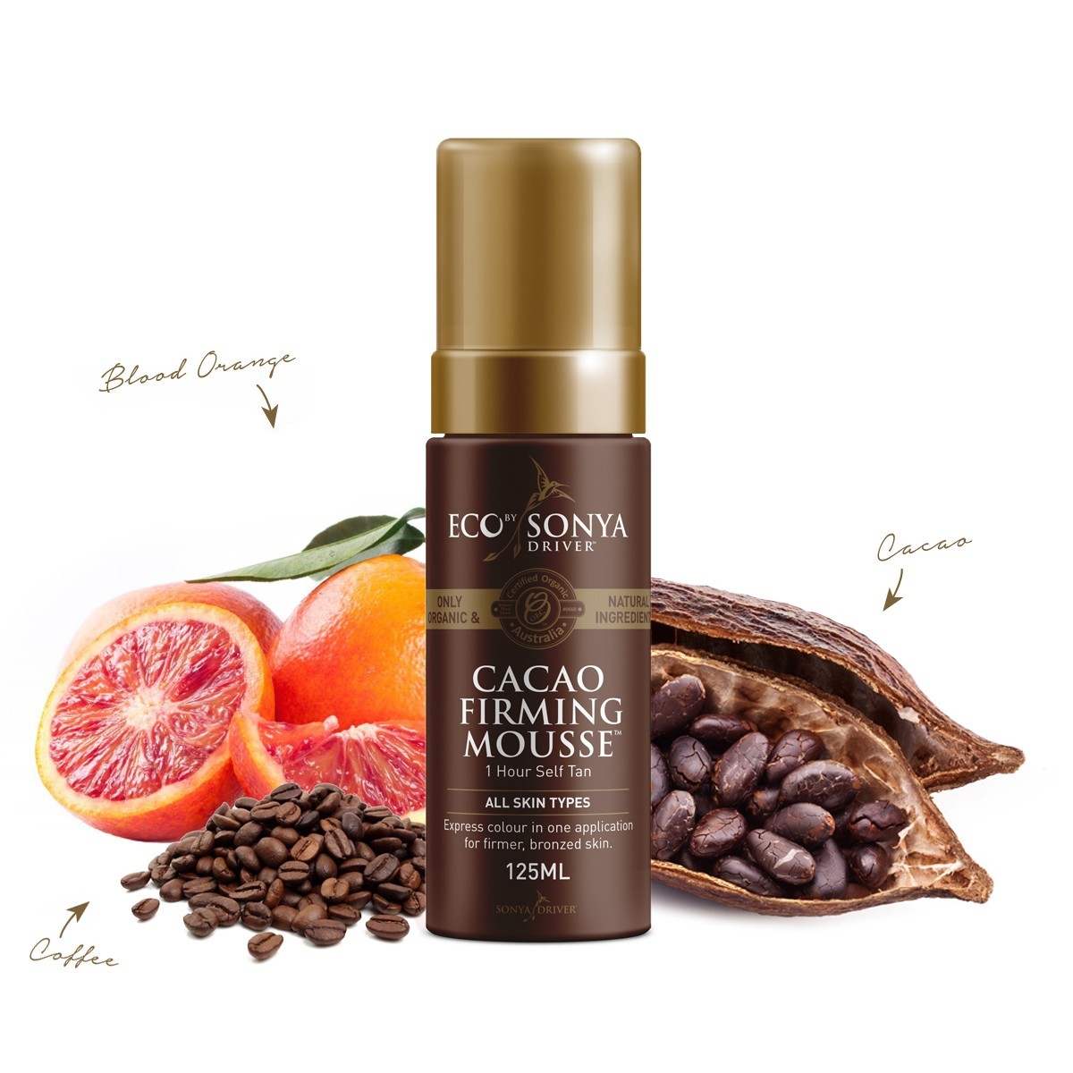Jemná a lehká samoopalovací pěna Eco by Sonya ideální pro ty, kteří chtějí dosáhnout rychlého výsledku! Certifikovaná organická káva, červený pomeranč, zázvor a mandarinka podporují redukci celulitidy a vytváří hladkou a sametovou pokožku. Kakaové boby a šťáva z aloe vera pečují o vaši krásu a opálení.