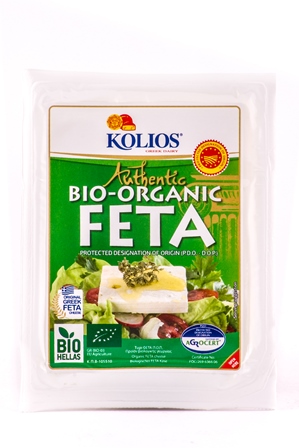 Řecký sýr z ovčího a kozího mléka typu Feta. Mléko na ten sýr bylo získáno z bio-zemědělství.