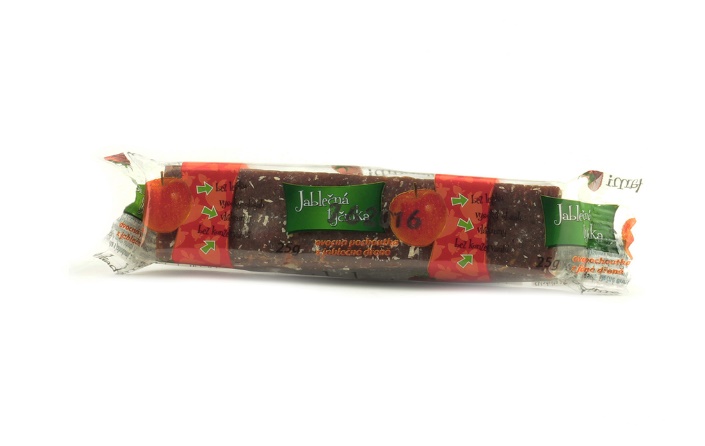 Vyrobeno z českých jablek Bez konzervačních a chemických látek Bez lepku Bez přídavku barviv Bez GMO Vysoký obsah vlákniny Zachovány vitamíny a minerály Informace: 1. Produkt je pouze jablečná dřen, jahody, kokos, slunečnice a poleva. 2. Vyrobeno z českých jablek od prověřených pěstitelů. 3. Díky vysokému obsahu vlákniny tělo na dlouhou dobu zasytí. 4. Zachovány vitamíny a minerály díky šetrnému zpracování a sušení. 5. Slunečnice obsahuje vysoké množství vitaminu B6, B9, hořčík, selen a je bohatá na vitamín E. 6. Lehká svačinka nejen pro děti. Na 25g jablečných tyčinek je použito 200g čerstvého ovoce. K výrobě dřeně je použita technologie drcení a lisování jablek na homogenizéru vlastní výroby. Díky kterému dochází k porušení ochranných obalů buněk jablečné vlákniny a tím uvolnění vitamínů a minerálních látek do dřeně. Ta se pak suší v nízkotepelné sušičce. Díky sušení při nízkých teplotách si tyčinky zachovají veškeré vitamíny, minerály a vydatné množství vlákniny. Tyčinky jsou poté posypány kokosem a slunečnicí.
