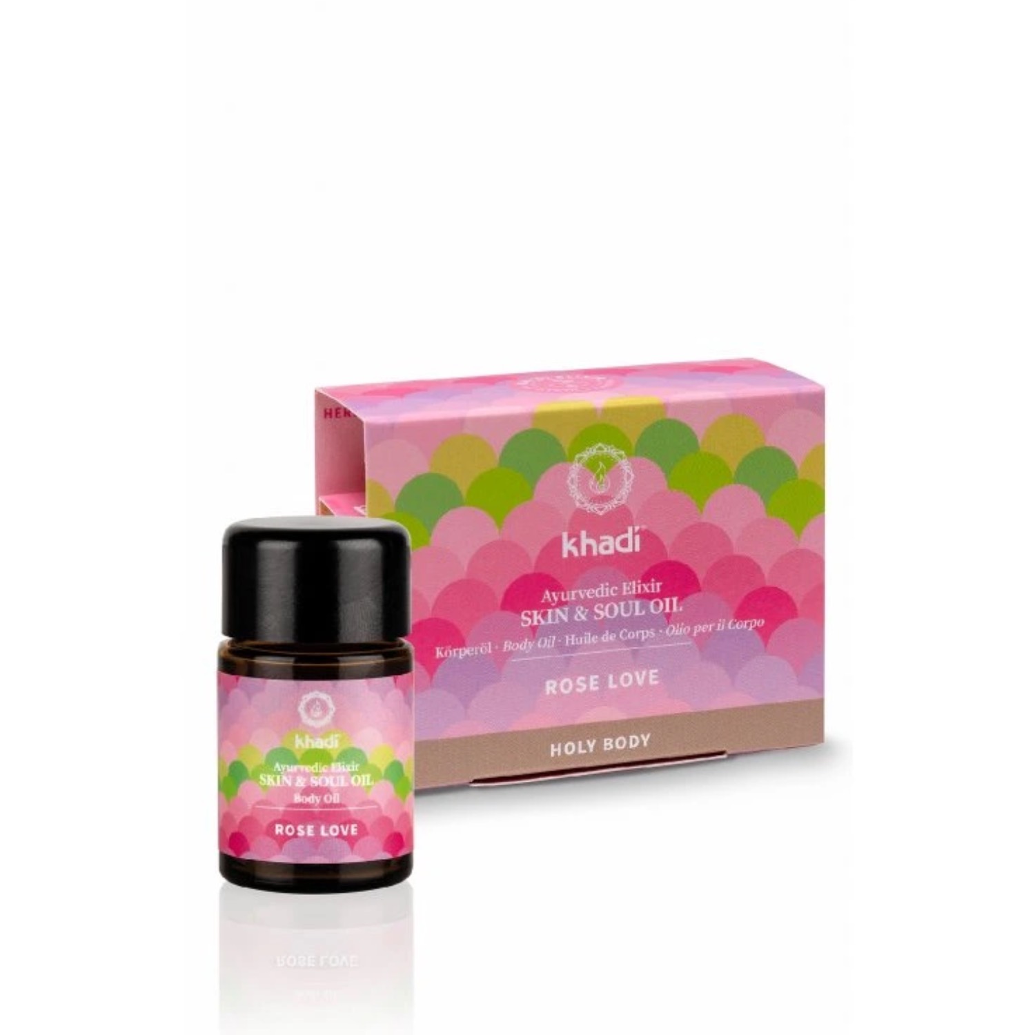 Khadi elixír olej Růže Láska je součástí série "Holy Body", kterou tvoří spolu s Khadi elixír oleji Shatavari Everyoung a Růžový lotos Krása. Ta je synonymem pro holistickou, celistvou péči, zahrnující tělo i duši. Integrální součástí ajurvédy byla vždy i aromaterapie. Khadi péče o krásu v sobě nese pravý ajurvédský komplexní přístup. Khadi elixír oleje pro pokožku a duši působí na pleť jako hudba na duši.