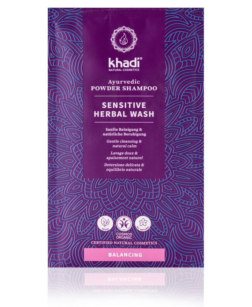Khadi ajurvédský práškový šampón Mytí rostlinami - Sensitive propojuje citlivé mytí a intenzivní péči v jednom. Tradiční ajurvédskou a kompletně přírodní cestou myje, harmonizuje vlasovou pokožku a poskytuje vlasům intenzivní péči, od kořínků po konečky. Khadi práškový šampón je ajurvédskou odpovědí, chcete-li mytí vlasů v nejpřírodnější a nejpůvodnější formě: vysoce koncentrované, účinné a táááák citlivé.