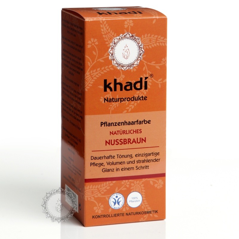 Rostlinná barva na vlasy Khadi OŘÍŠKOVÁ barví vlasy ořechově hnědým odstínem. Výsledný barevný tón je závislý na přirozené barvě Vašich vlasů.