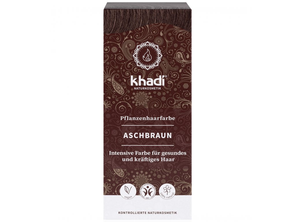 Khadi rostlinná barva na vlasy Popelavě hnědá barví vlasy popelavým, středně hnědým odstínem, bez načervenalých odlesků.
