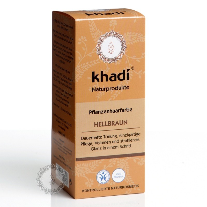 Rostlinná barva na vlasy Khadi SVĚTLE HNĚDÁ barví vlasy světle hnědě. Výsledný barevný tón je závislý na přirozené barvě Vašich vlasů.
