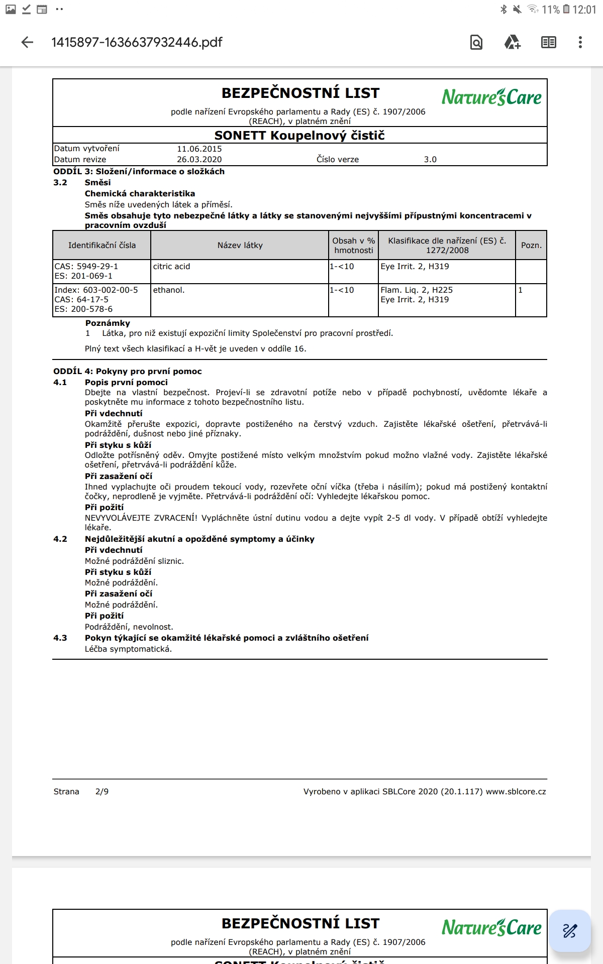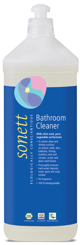 SONETT Koupelnový čistič k kyselinou citrónovou. Odstraňuje vodní kámen, vápenné usazeniny, mastnotu a organické nečistoty. Čištěný povrch zanechá lesklý a hygienicky čistý.