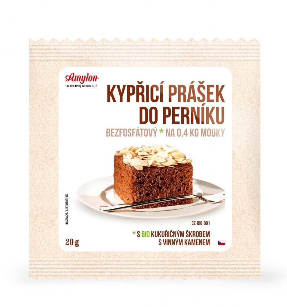 Kypřící prášek do perníku s obsahem BIO produktů.