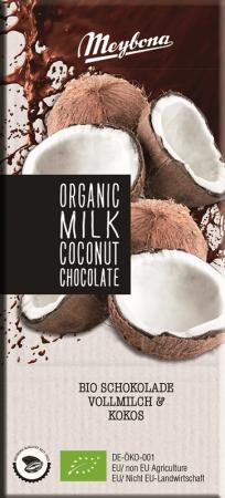 BIO mléčná čokoláda s kokosovými vločkami.