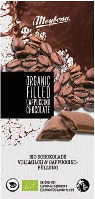 BIO mléčná čokoláda s náplní Cappuccino (30%).