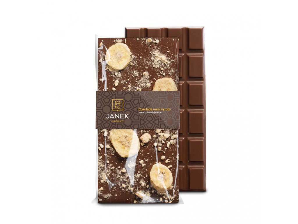 Mléčná čokoláda s lyofilizovaným banánem.