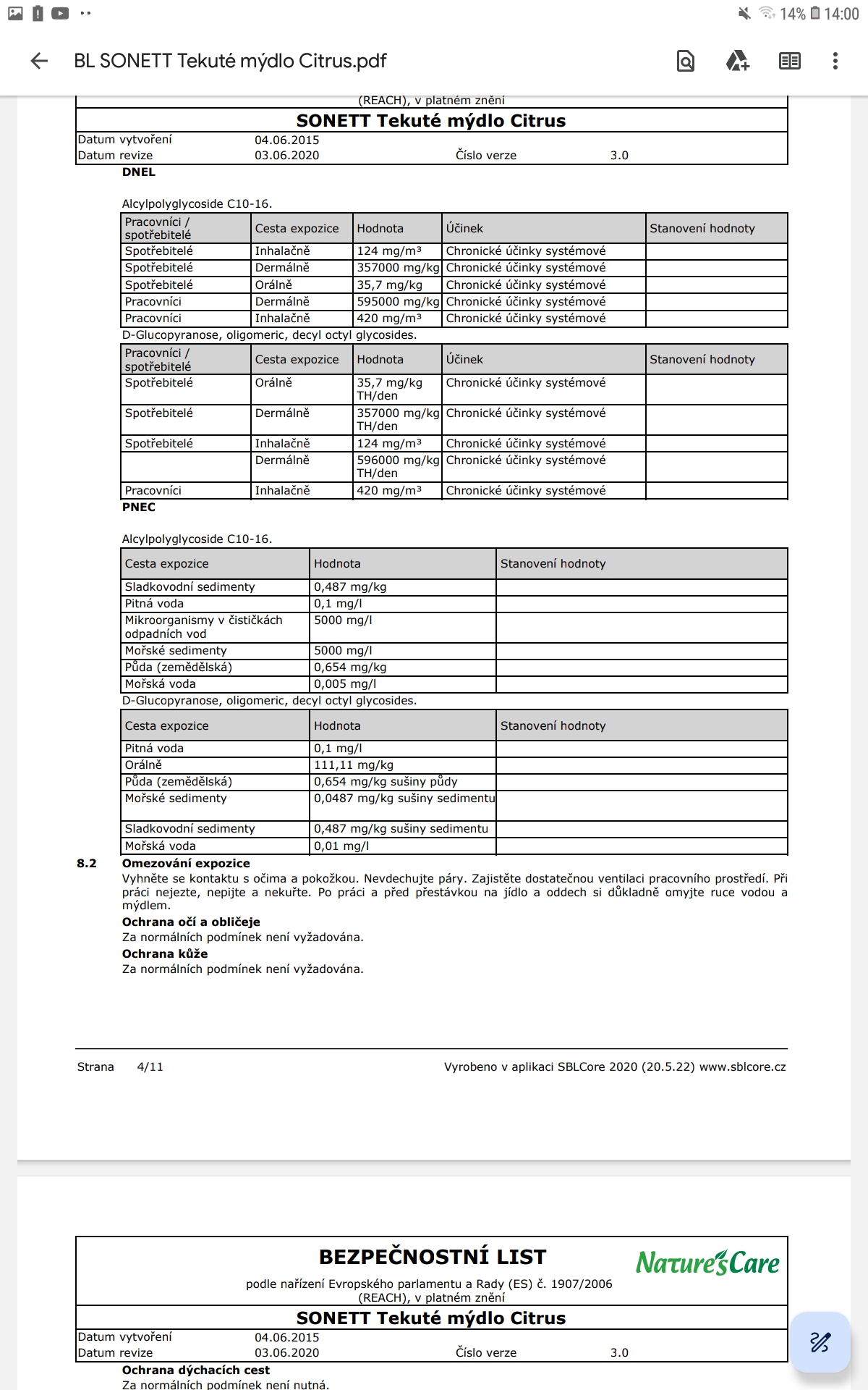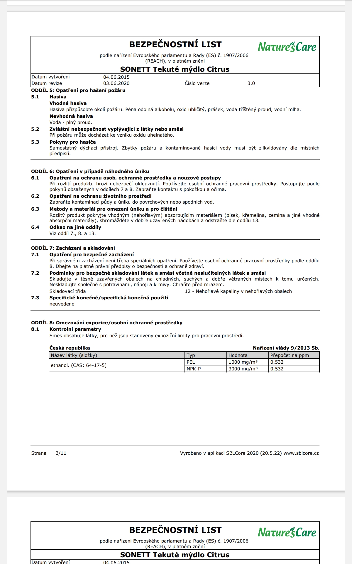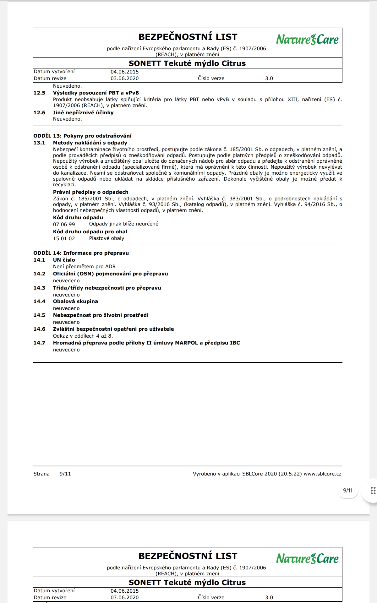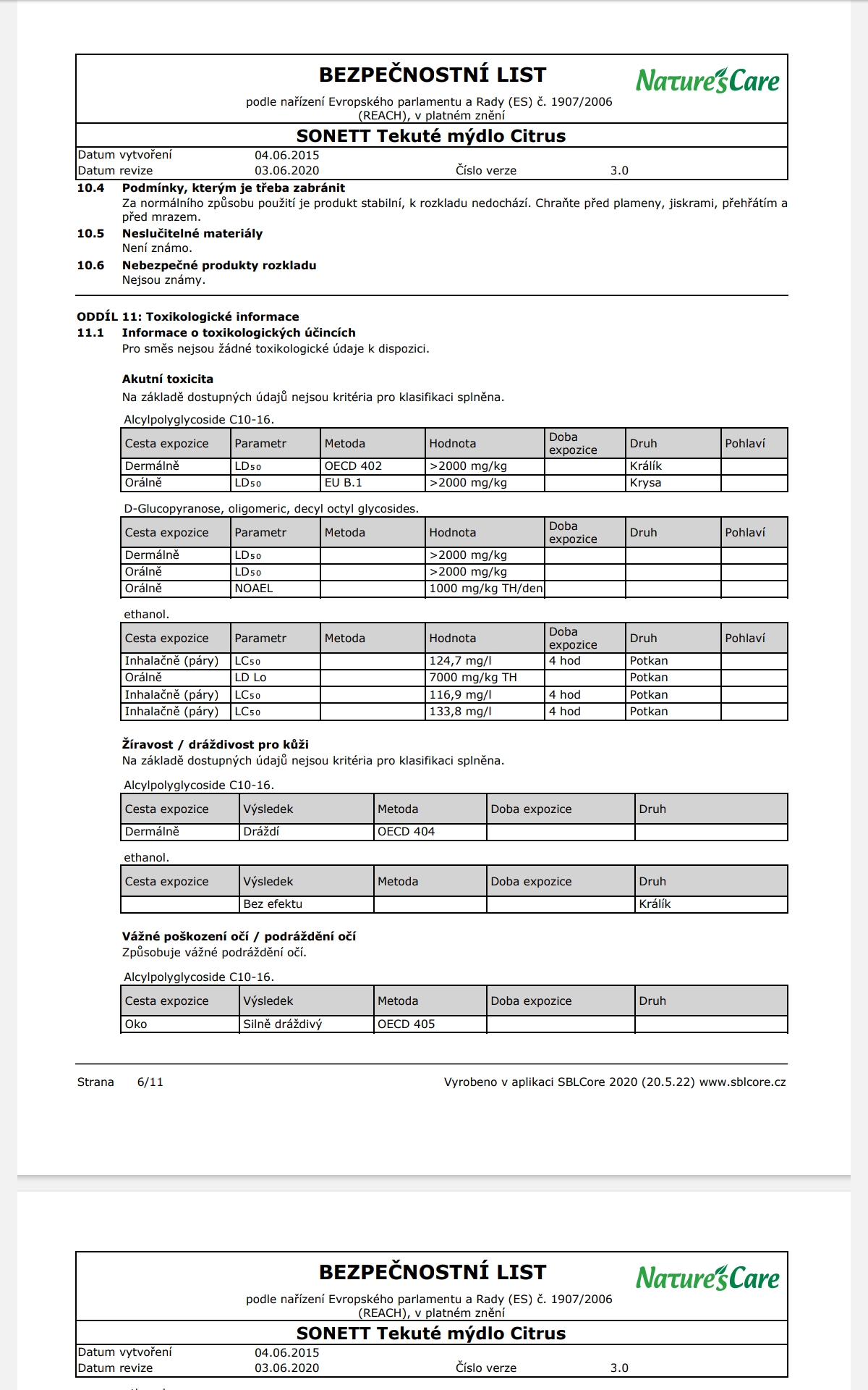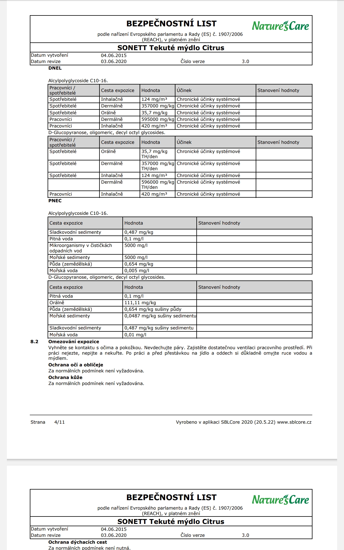Biologické odbourávání: Mýdlo ztrácí okamžitě po použití, v bezprostřední reakci s vápníkem obsaženým vždy v odpadní vodě, své vlastností snižující povrchové napětí (primární odbourávání). Vápenaté mýdlo je následně ze 100 % rozkládáno na oxid uhličitý a vodu (sekundární odbourávání). Cukrové smáčedlo a deriváty kokosového oleje jsou získávány chemickou konverzí pomocí kyselin ze surových materiálů čistě rostlinného původu a kompletně si zachovávají svou přirozenou strukturu. Pro mikroorganismy je proto snadné je kompletně rozložit. Etanol je do přírodního cyklu navrácen během několika hodin.