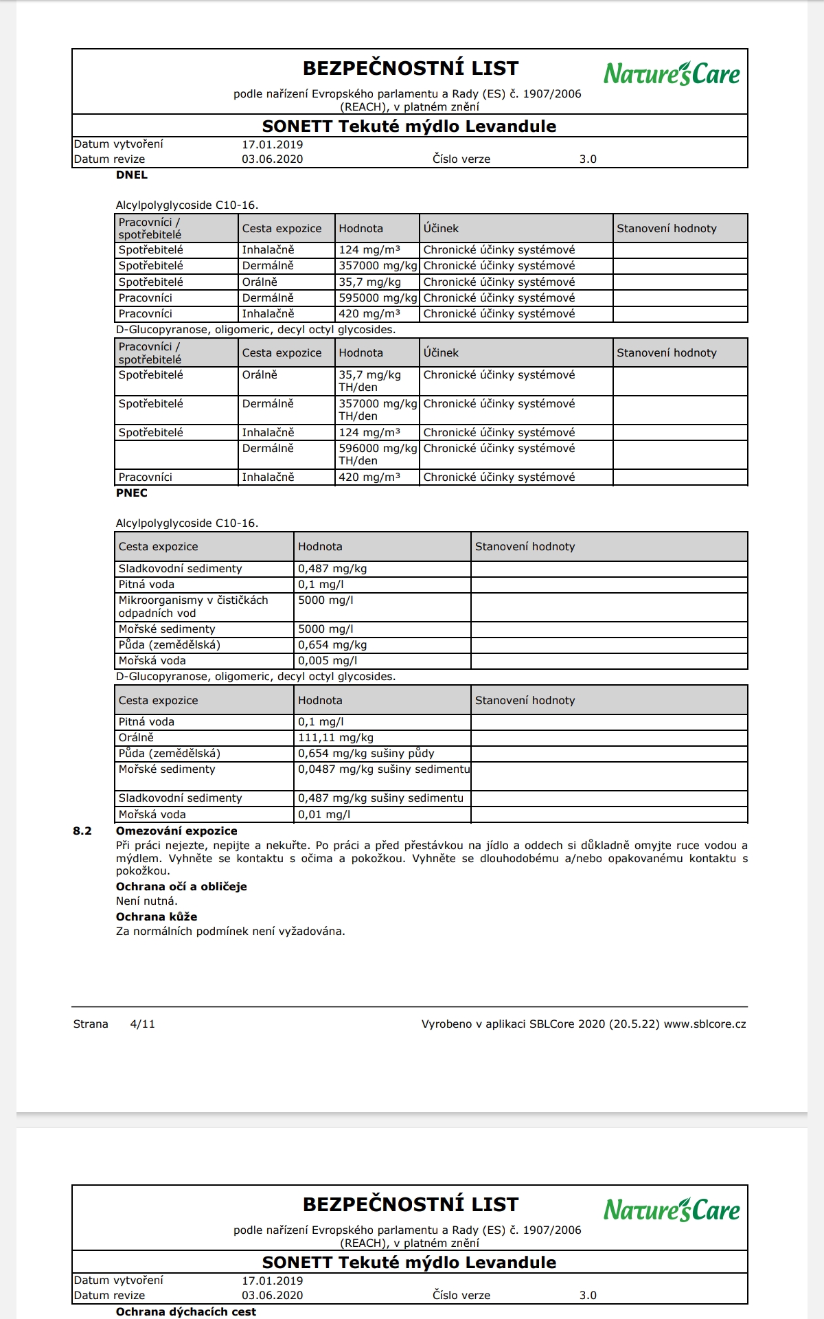 Biologické odbourávání: Mýdlo ztrácí okamžitě po použití, v bezprostřední reakci s vápníkem obsaženým vždy v odpadní vodě, své vlastností snižující povrchové napětí (primární odbourávání). Vápenaté mýdlo je následně ze 100 % rozkládáno na oxid uhličitý a vodu (sekundární odbourávání). Cukrové smáčedlo a deriváty kokosového oleje jsou získávány chemickou konverzí pomocí kyselin ze surových materiálů čistě rostlinného původu a kompletně si zachovávají svou přirozenou strukturu. Pro mikroorganismy je proto snadné je kompletně rozložit. Etanol je do přírodního cyklu navrácen během několika hodin.