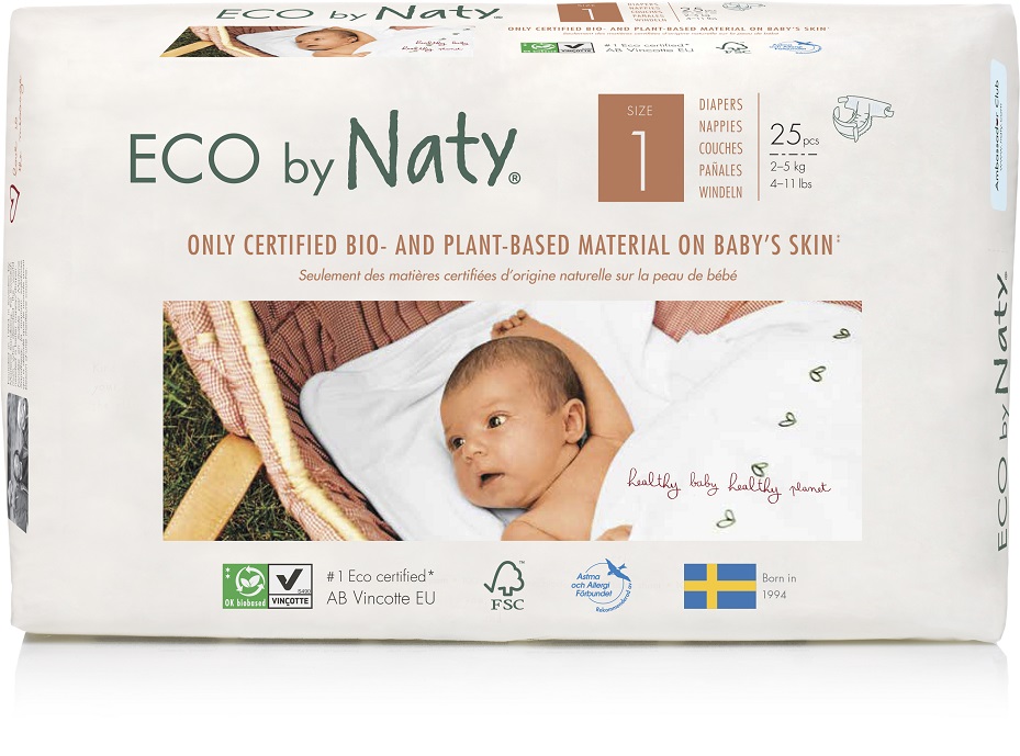 Pro děti o hmotnosti 2 - 5 kg. 25 ks plenek v balení. Jednorázové, dermatologicky a ekologicky šetrné plenky.