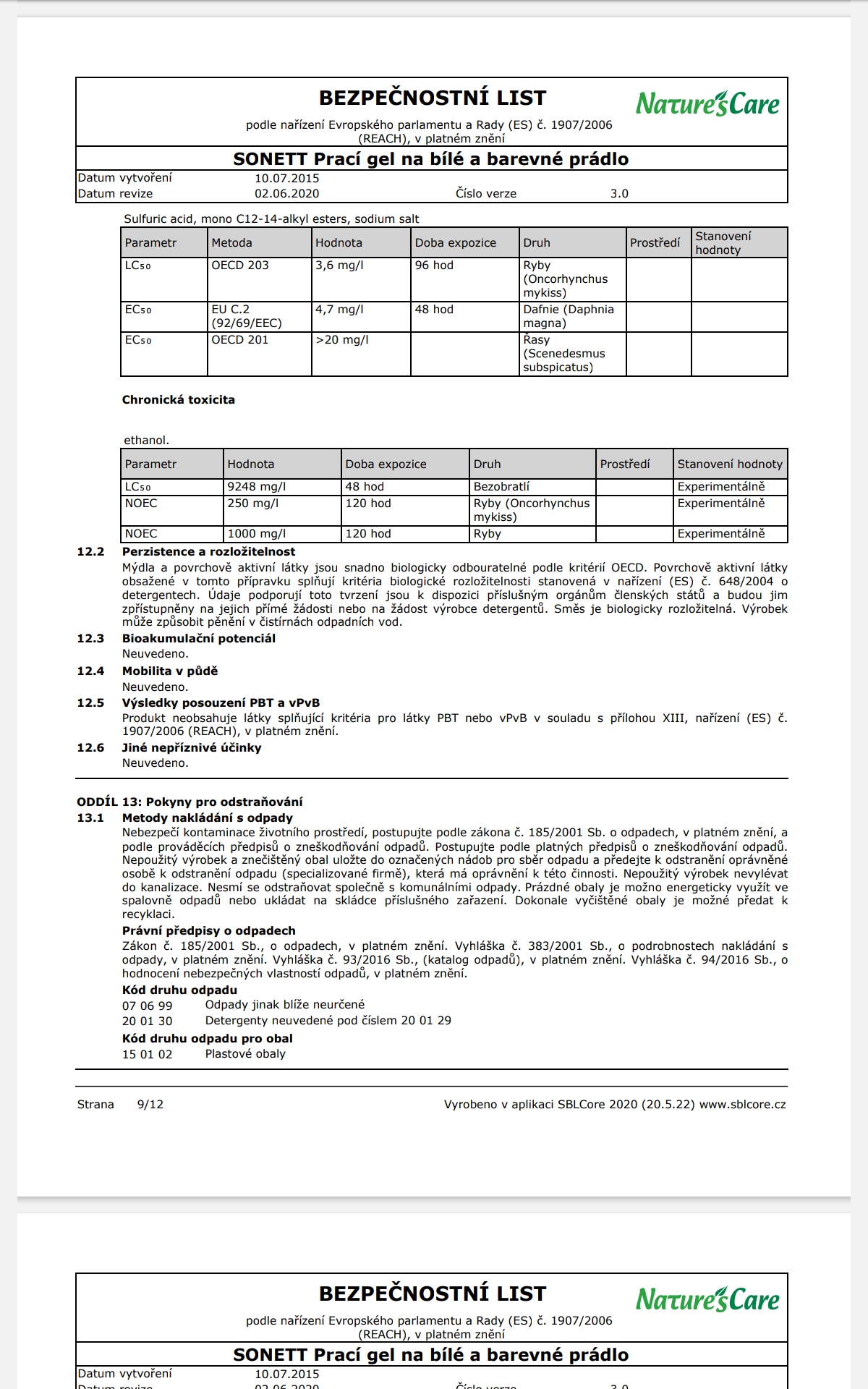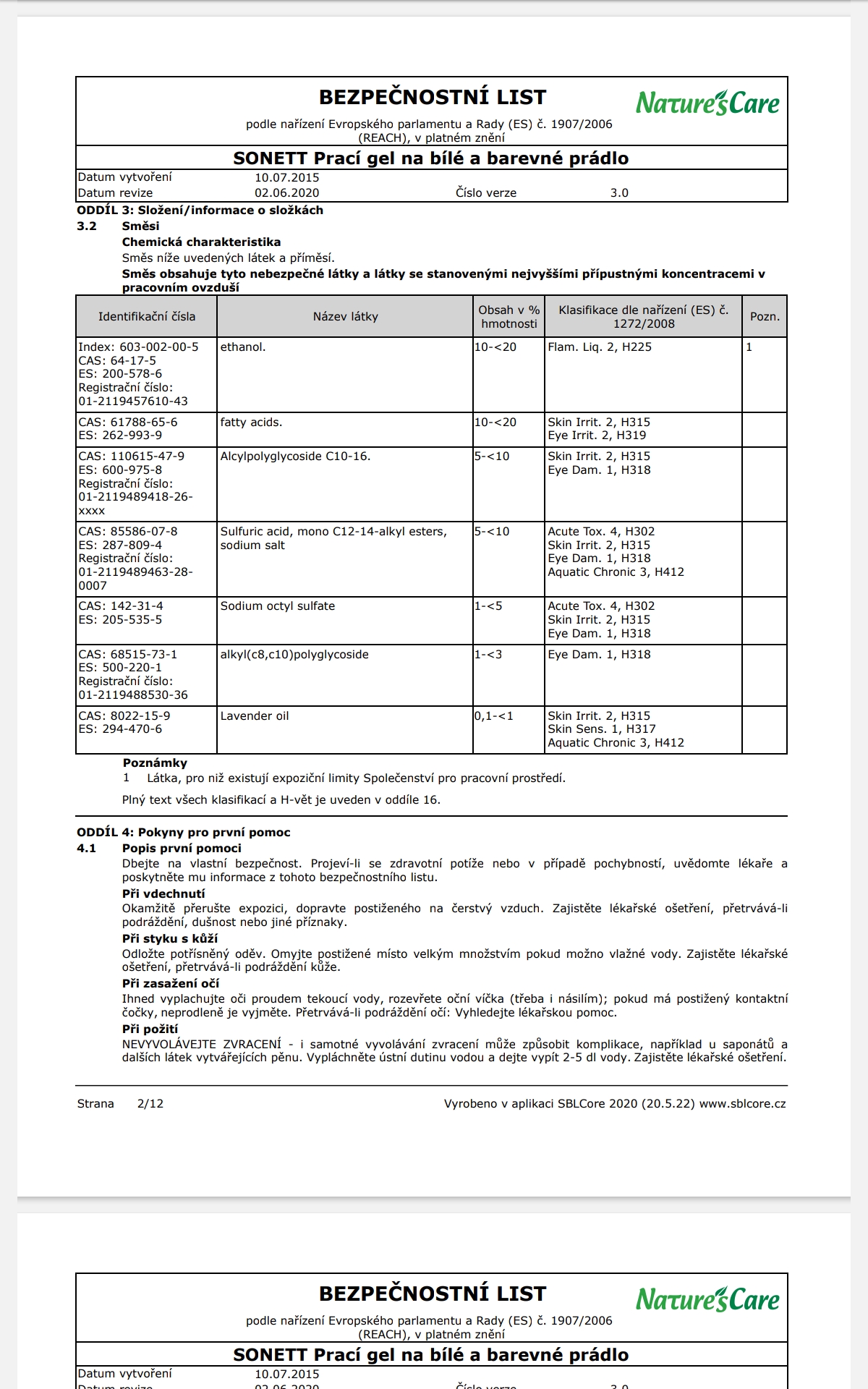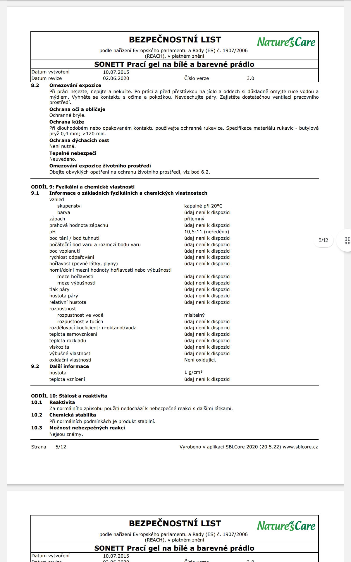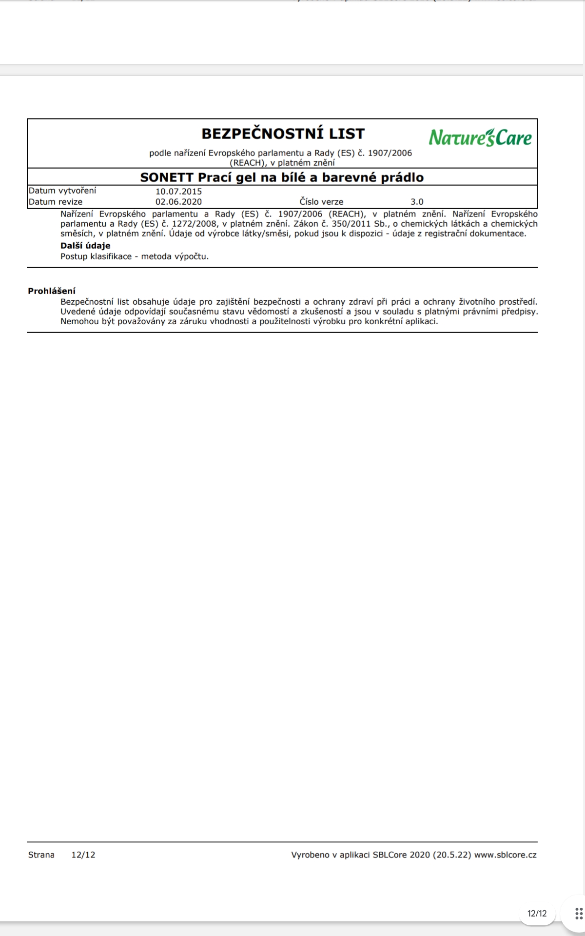 Poznámka: Účinky mýdlových pracích prostředků se mohou plně rozvinout pouze v měkké vodě, z toho důvodu je NUTNÉ přidat změkčovadlo ke každému praní. Při teplotách od 50°C lze na odolné skvrny přidat 60 ml bělidla SONETT.
