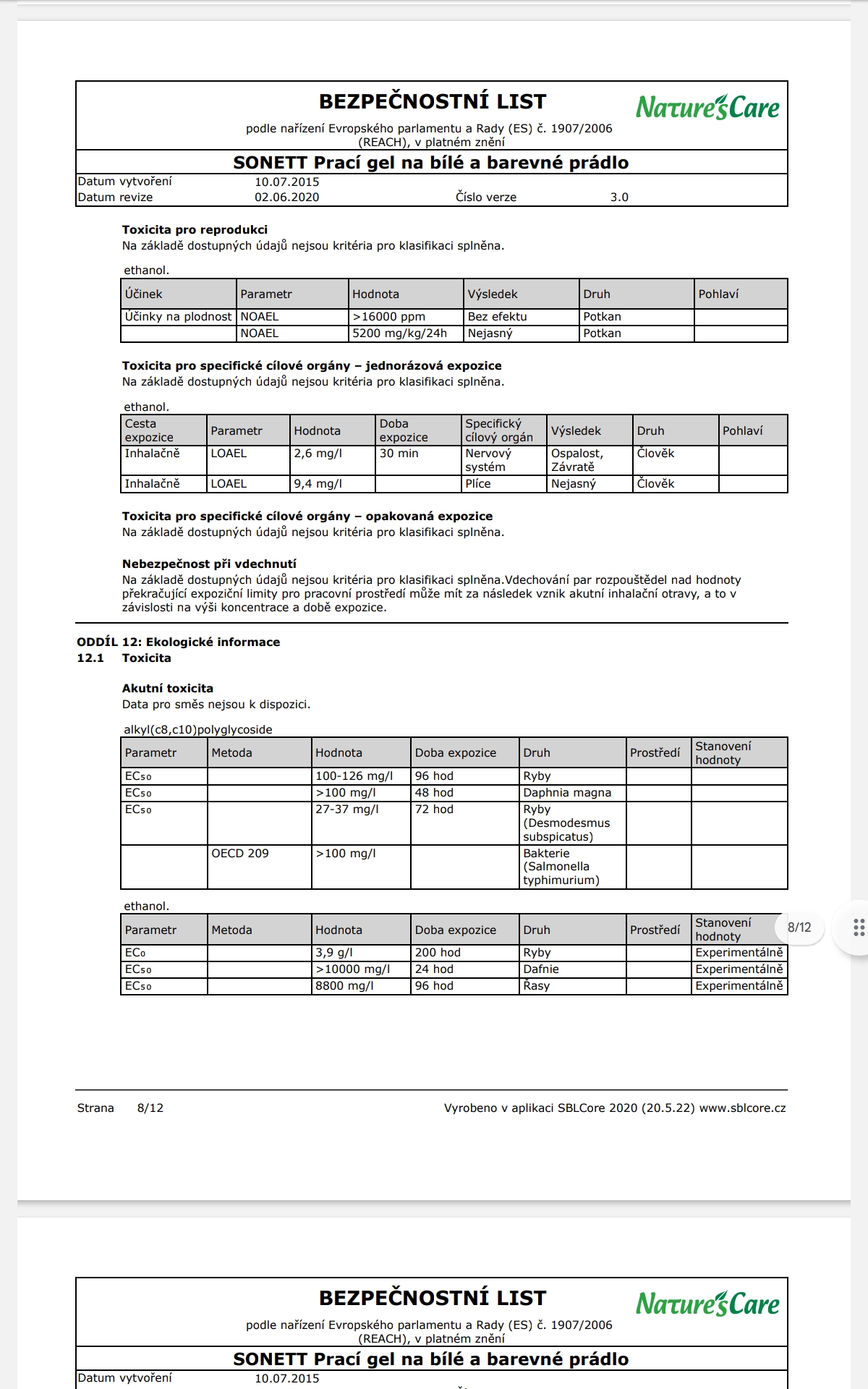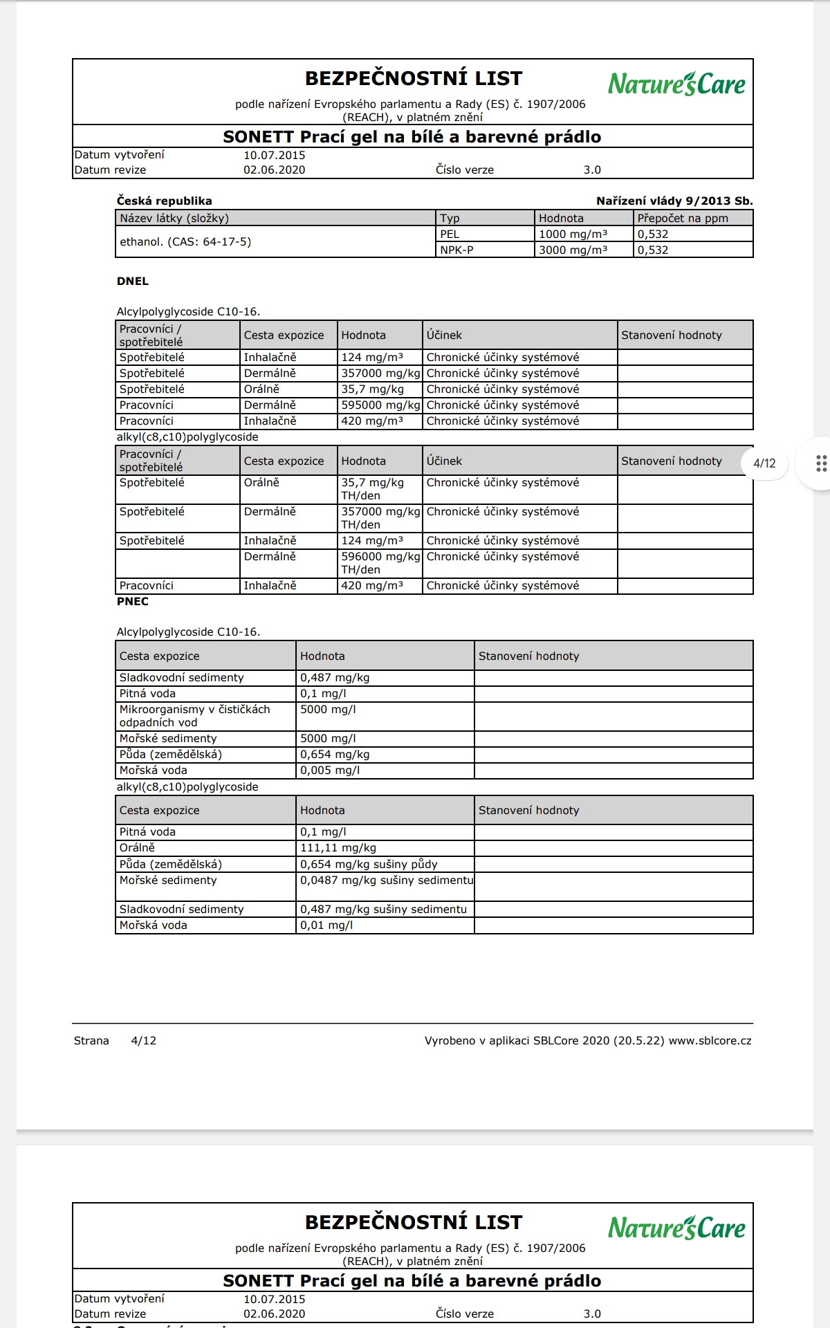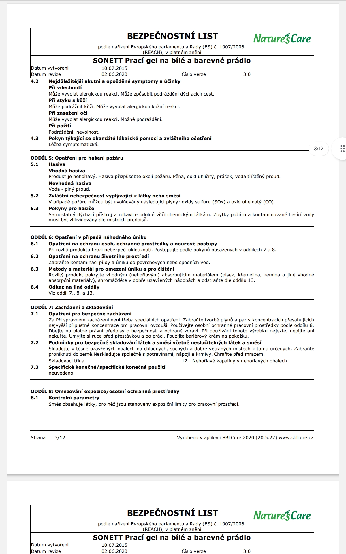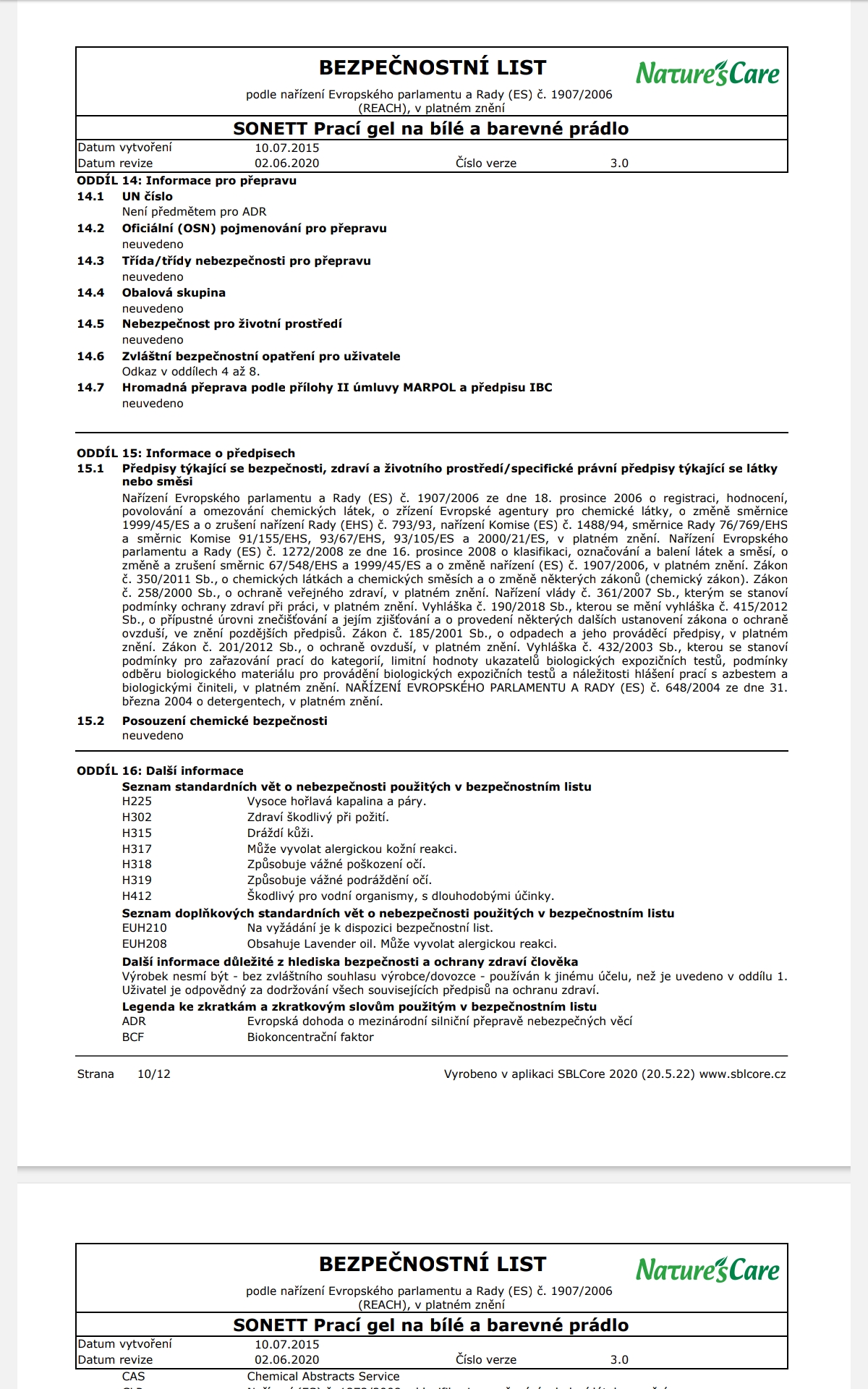 Poznámka: Účinky mýdlových pracích prostředků se mohou plně rozvinout pouze v měkké vodě, z toho důvodu je NUTNÉ přidat změkčovadlo ke každému praní. Při teplotách od 50°C lze na odolné skvrny přidat 60 ml bělidla SONETT.