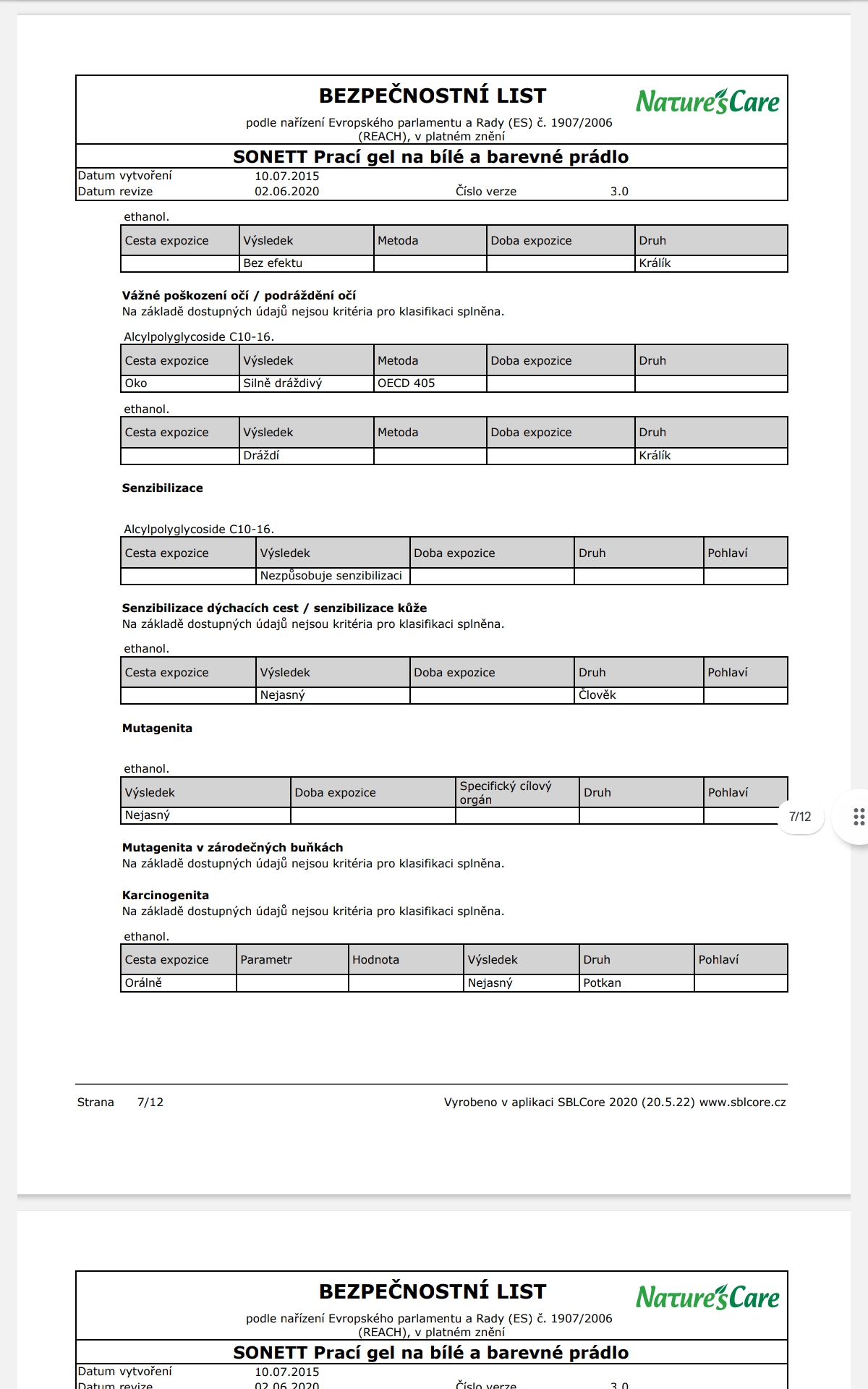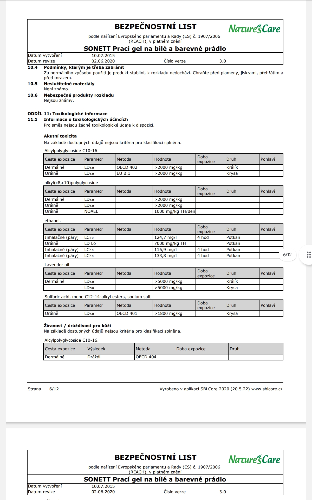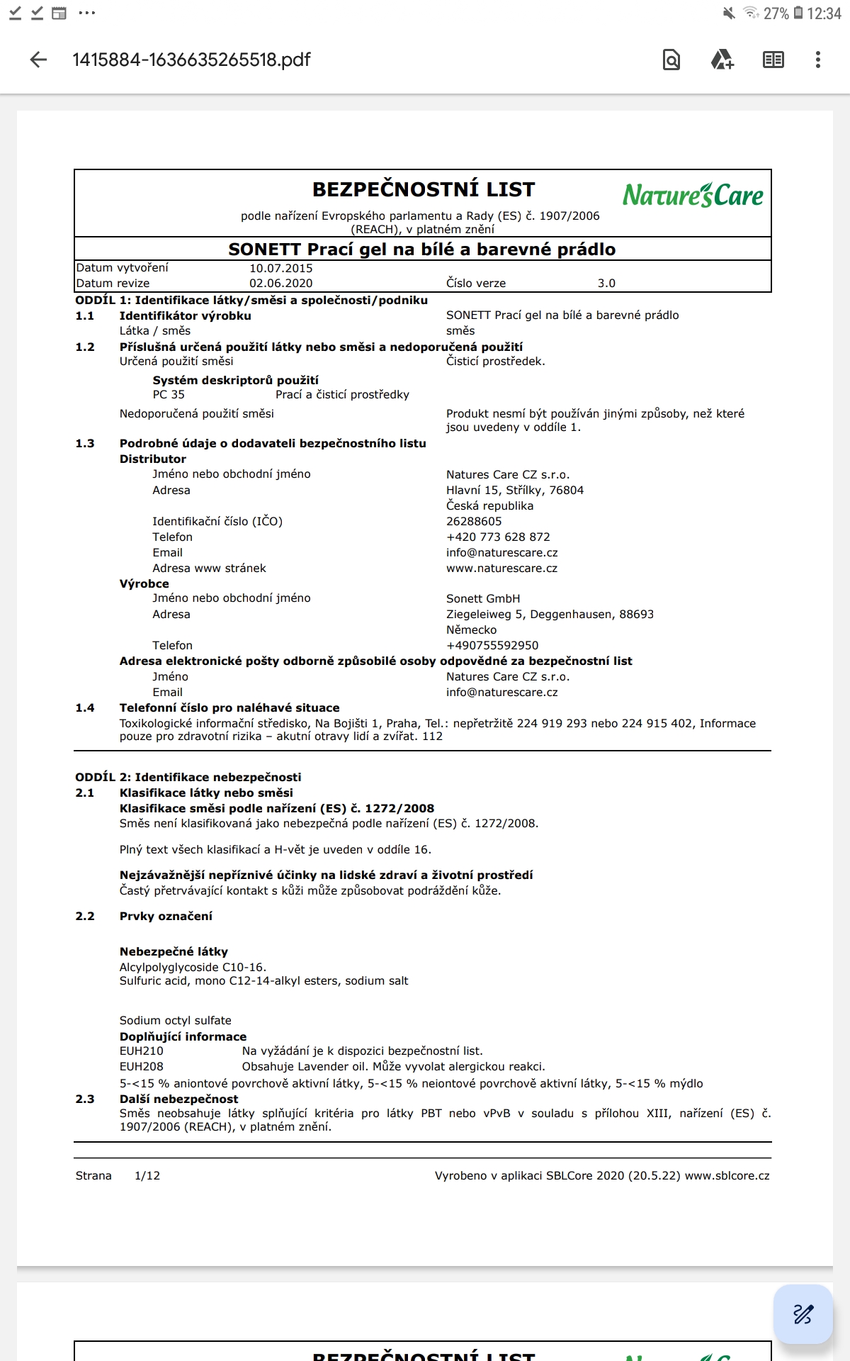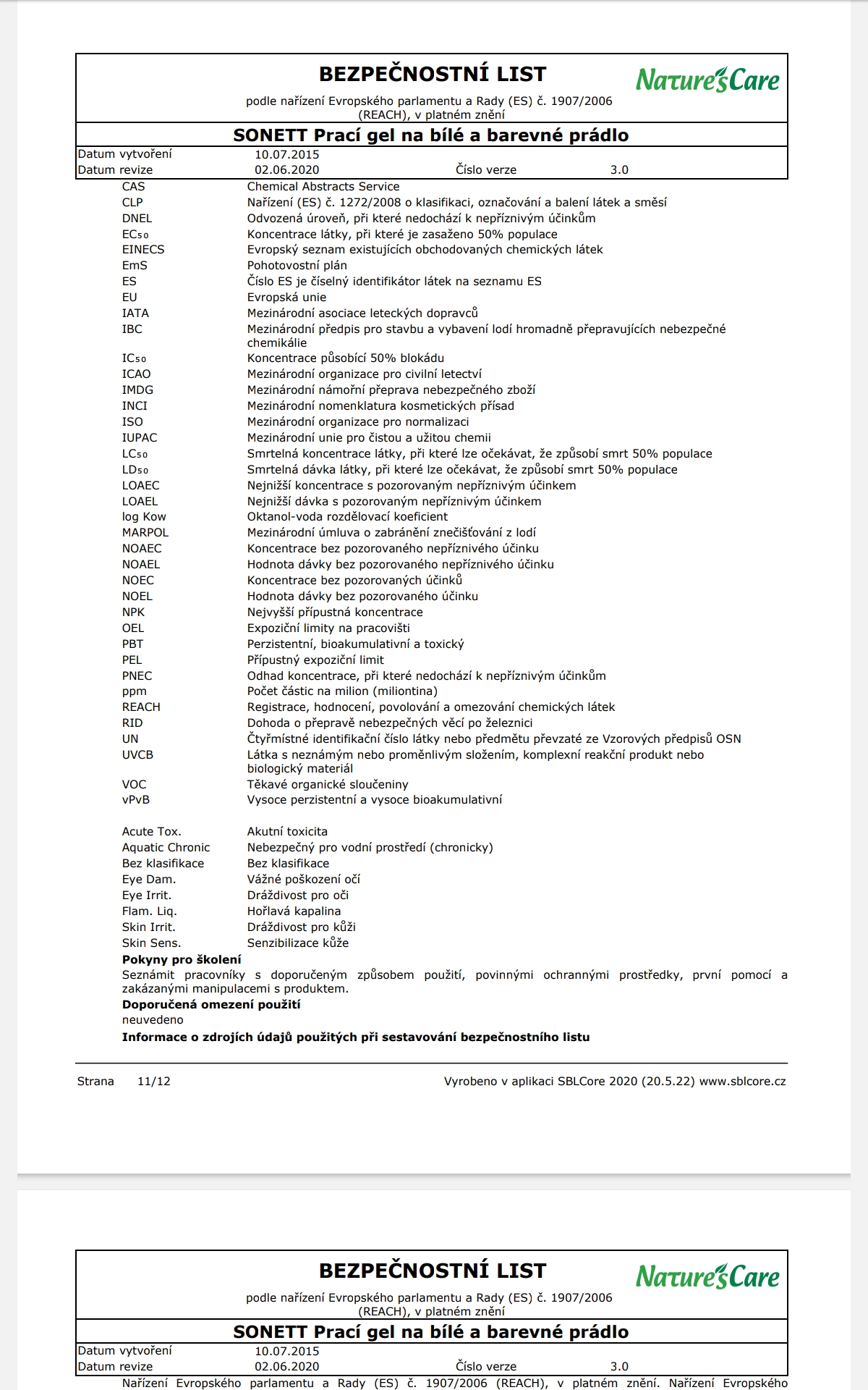 Poznámka: Účinky mýdlových pracích prostředků se mohou plně rozvinout pouze v měkké vodě, z toho důvodu je NUTNÉ přidat změkčovadlo ke každému praní. Při teplotách od 50°C lze na odolné skvrny přidat 60 ml bělidla SONETT.