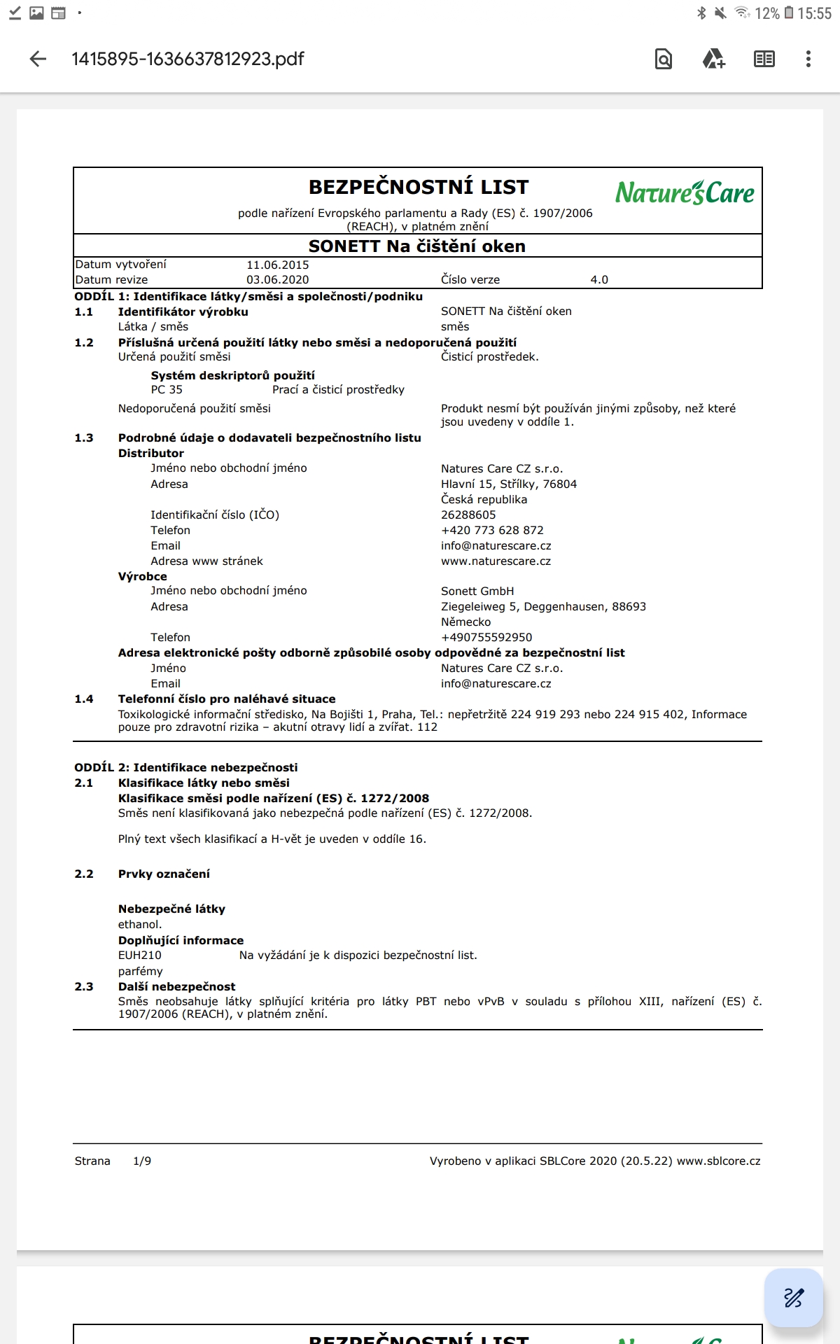 Původ a vlastnosti jednotlivých složek: Kukuřičný a bramborový škrob je kvašením přeměněn na etanol. Koncentrace alkoholového roztoku čističe skla je zvolena tak, aby na povrchu skla nevznikaly šmouhy a aby roztok rychle uschnul. Etanol navíc pomáhá důkladně odstranit mastné nečistoty. Derivát kokosového oleje a cukrové smáčedlo získávané z rostlinného škrobu a kokosového tuku, pomáhají rozmočení a uvolnění nečistoty.