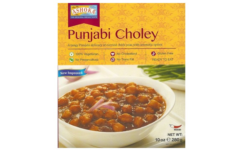 Voda. Cizrna. Cibule. Slunečnicový olej. Česnek. Rajčatový protlak. Zázvor. List koriandru. Směs koření [semena koriandru, kmín, pepř, prášek z granátového jablka, bobkový list, černá sůl, list pískavice, červené chilli, sušené mango, sůl, skořice, karambolový prášek, zázvorový prášek, černý kardamom]. Červené chilli papričky. Kmín. Koriandr. Fenykl. Černá sůl.