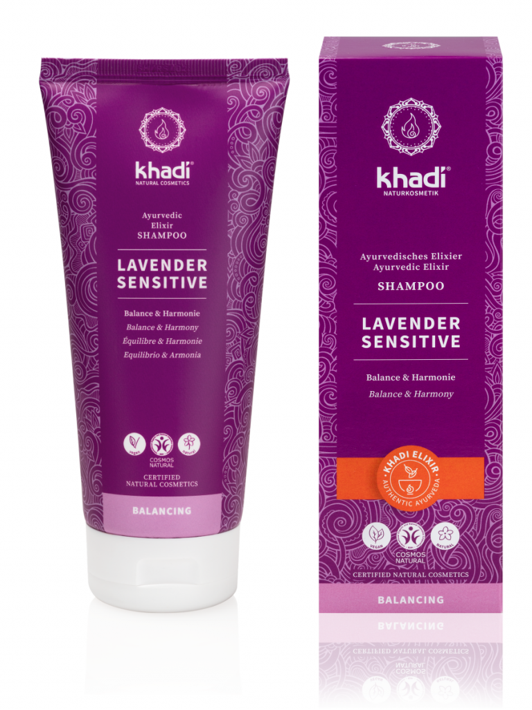 Khadi elixír šampón Levandule Sensitive delikátně myje citlivé vlasy a zklidňuje podrážděnou vlasovou pokožku. Tajemství citlivé a zklidňující péče spočívá v Khadi elixíru Levandule Sensitive. V této kompozici se propojují účinky ajurvédsky připravených extraktů z indických léčivých rostlin do synergického celku, který umocňuje účinek jednotlivých rostlin.