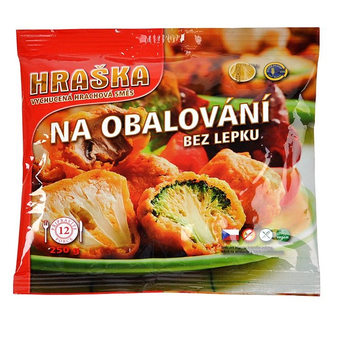 Pikantní ochucená směs hrachu a bezlepkových obilovin, která zdravěji nahradí klasický trojobal, je vhodná na zahuštění.