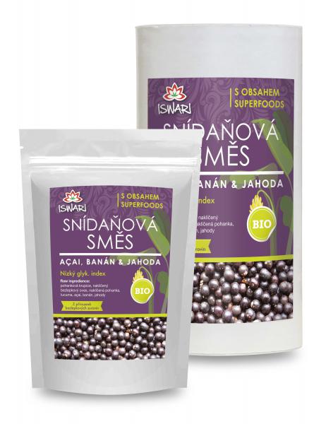 SNÍDAŇOVÁ SMĚS ACAÍ-JAHODA-BANÁN (S OBSAHEM SUPERFOODS / RAW / BEZ LEPKU)