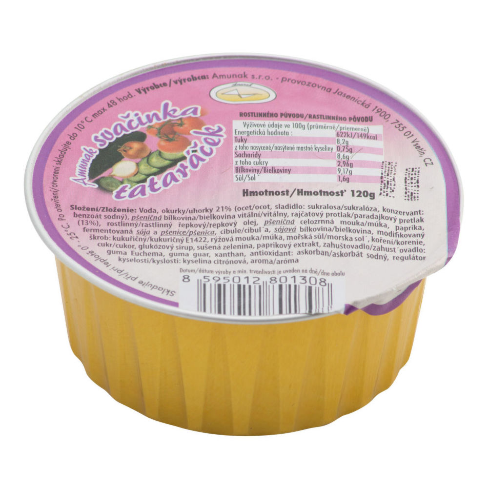 Luštěninová pomazánka balená v mističce s odtrhávacím víčkem. Tuto pomazánku není nutné uchovávat v chladu. Záruční doba 2 roky od data výroby je dosahována záhřevem na sterilační teplotu a následným šokovým chlazením.