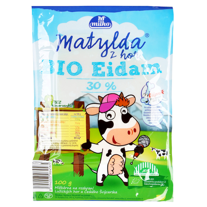 Sýr eidam 30% BIO (100g) od výrobce Polabské mlékárny.