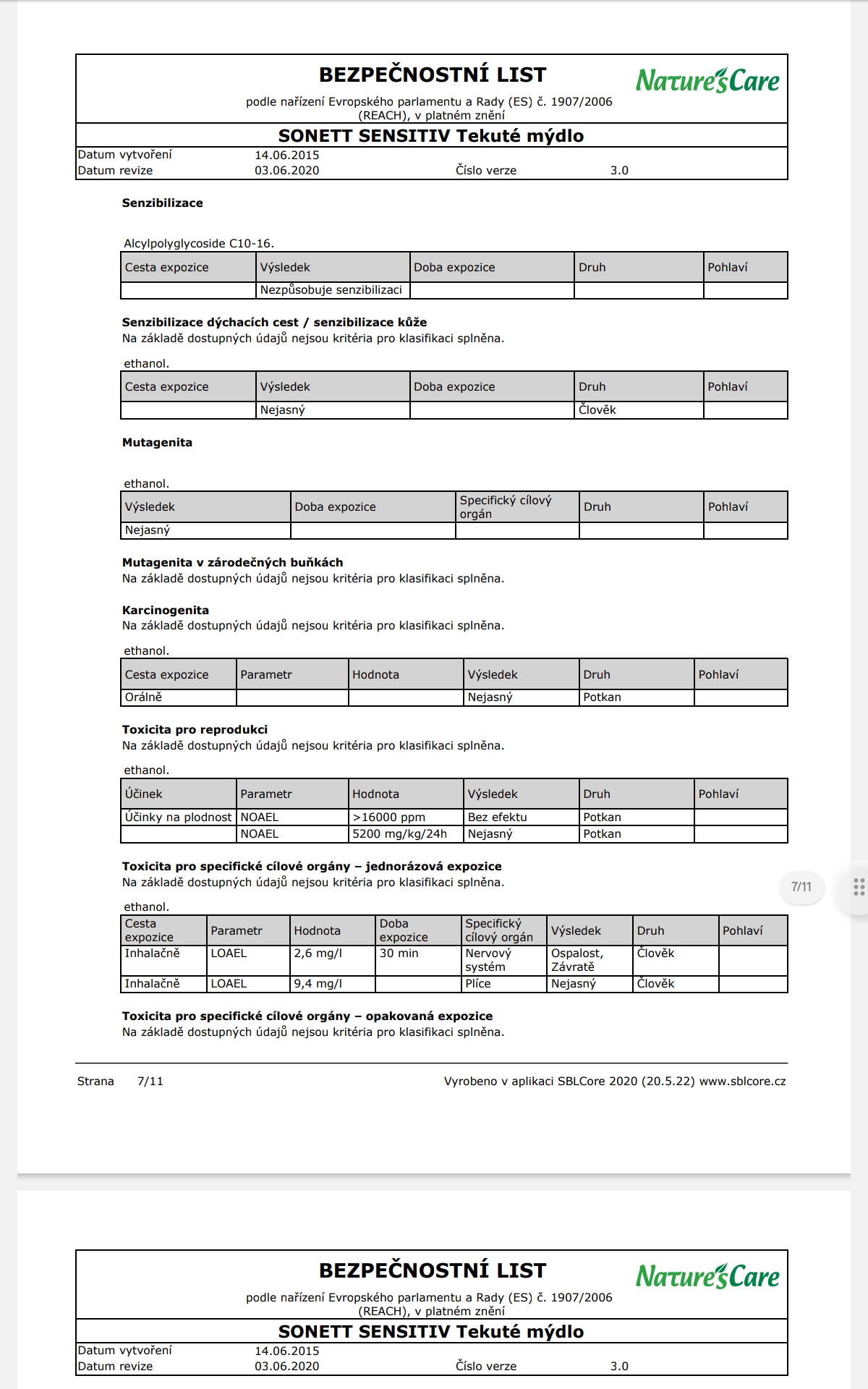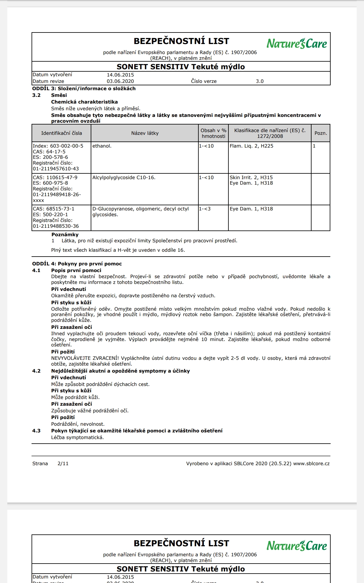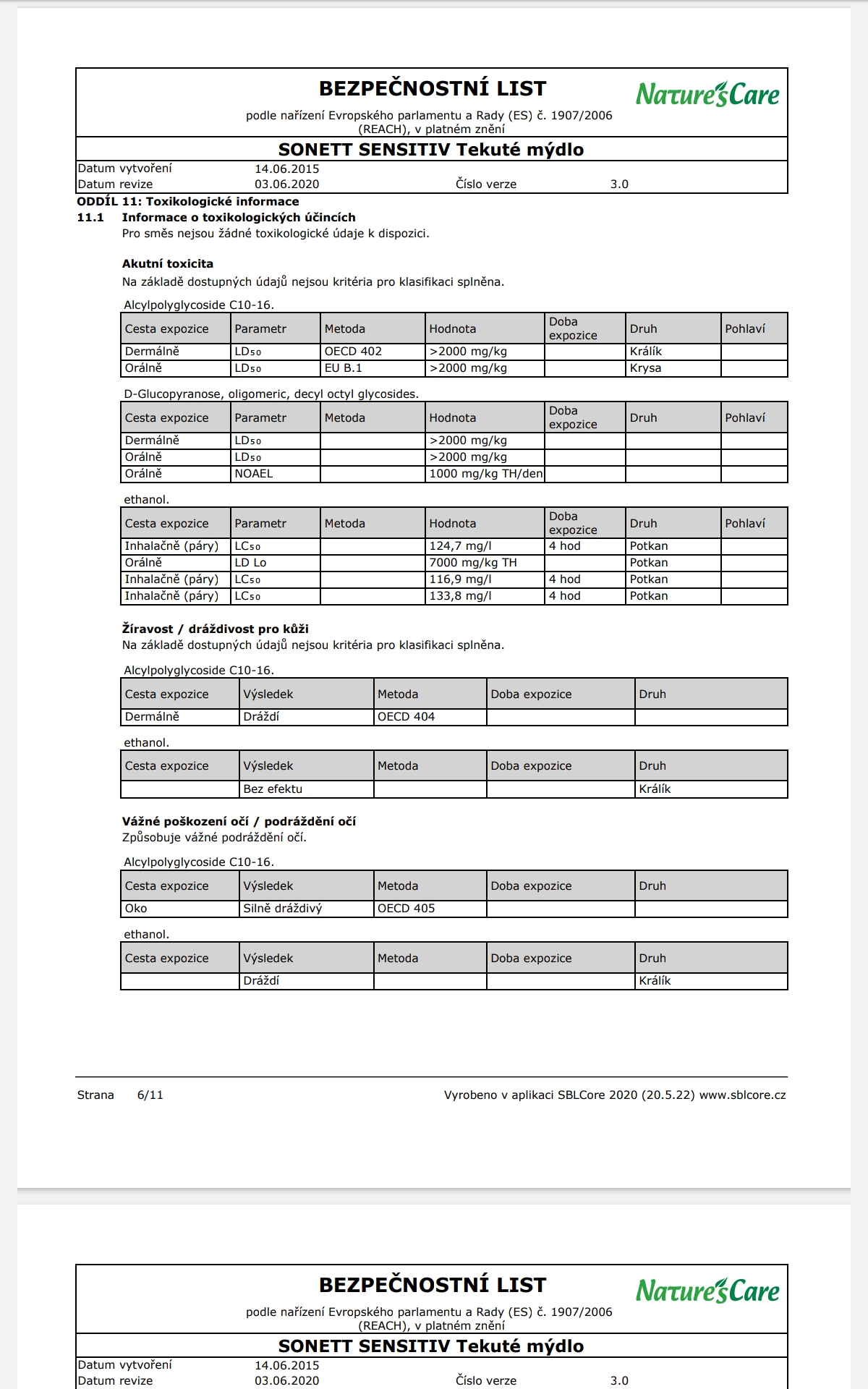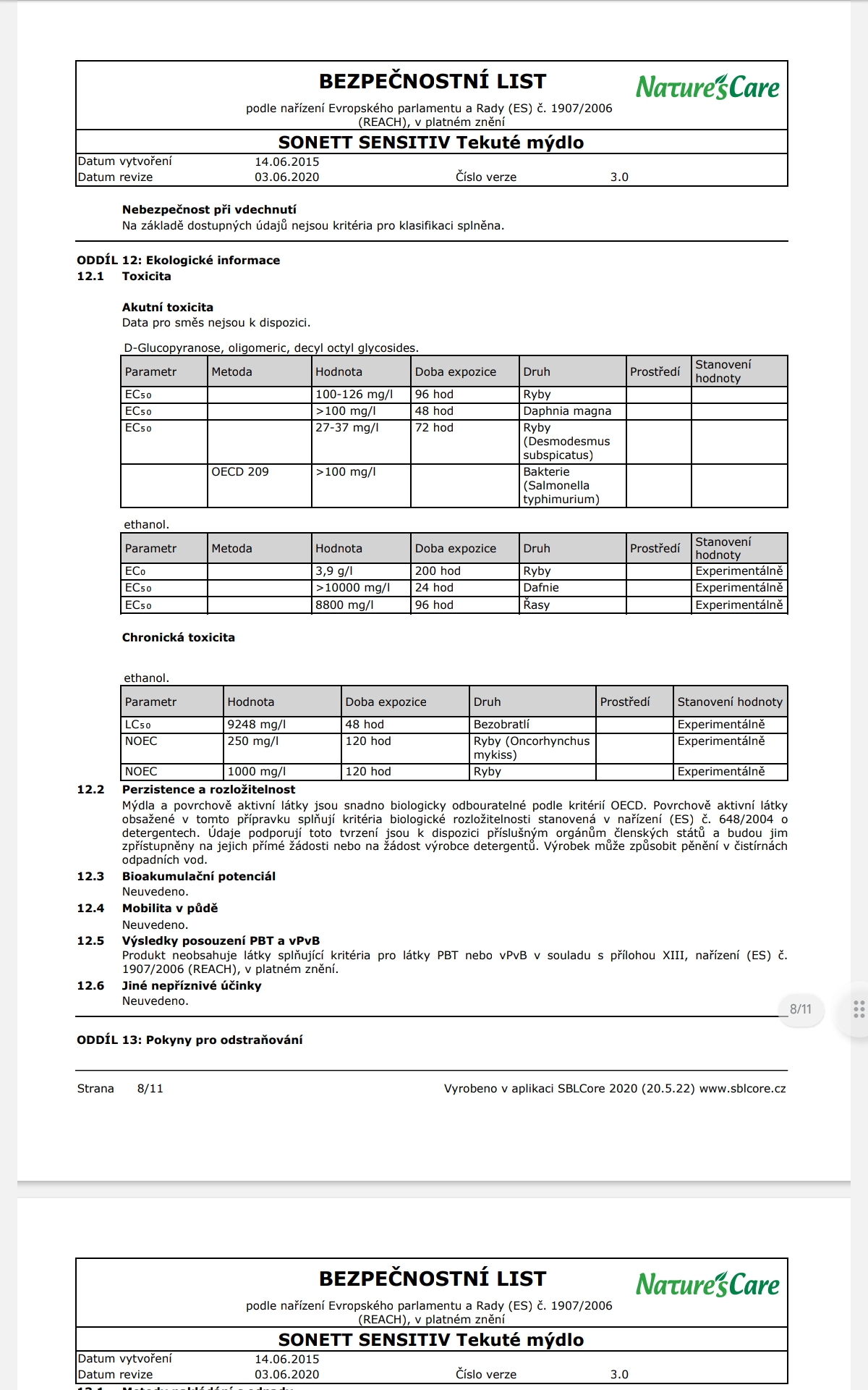 Biologické odbourávání: Mýdlo ztrácí okamžitě po použití, v bezprostřední reakci s vápníkem obsaženým vždy v odpadní vodě, své vlastností snižující povrchové napětí (primární odbourávání). Vápenaté mýdlo je následně ze 100 % rozkládáno na oxid uhličitý a vodu (sekundární odbourávání). Cukrové smáčedlo a deriváty kokosového oleje jsou získávány chemickou konverzí pomocí kyselin ze surových materiálů čistě rostlinného původu a kompletně si zachovávají svou přirozenou strukturu. Pro mikroorganismy je proto snadné je kompletně rozložit. Etanol je do přírodního cyklu navrácen během několika hodin.