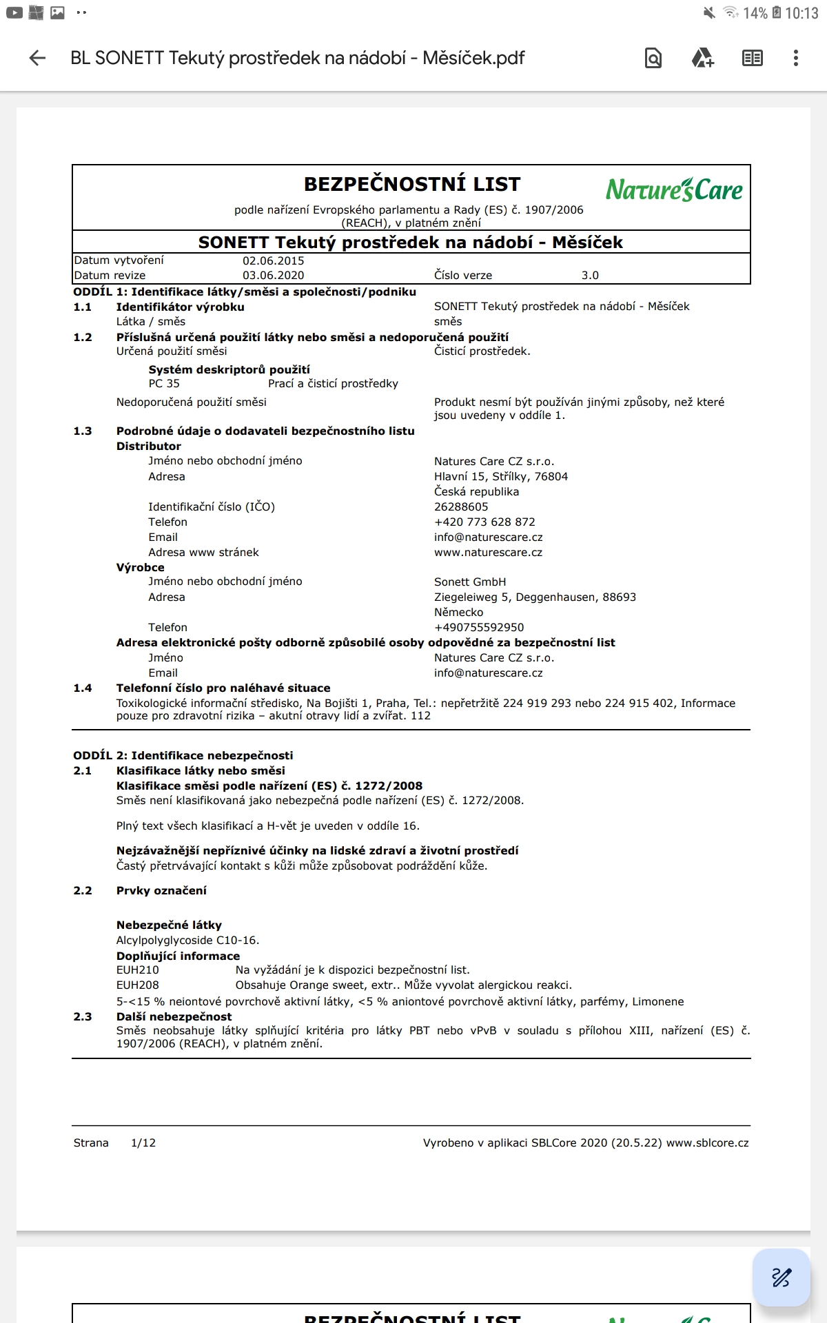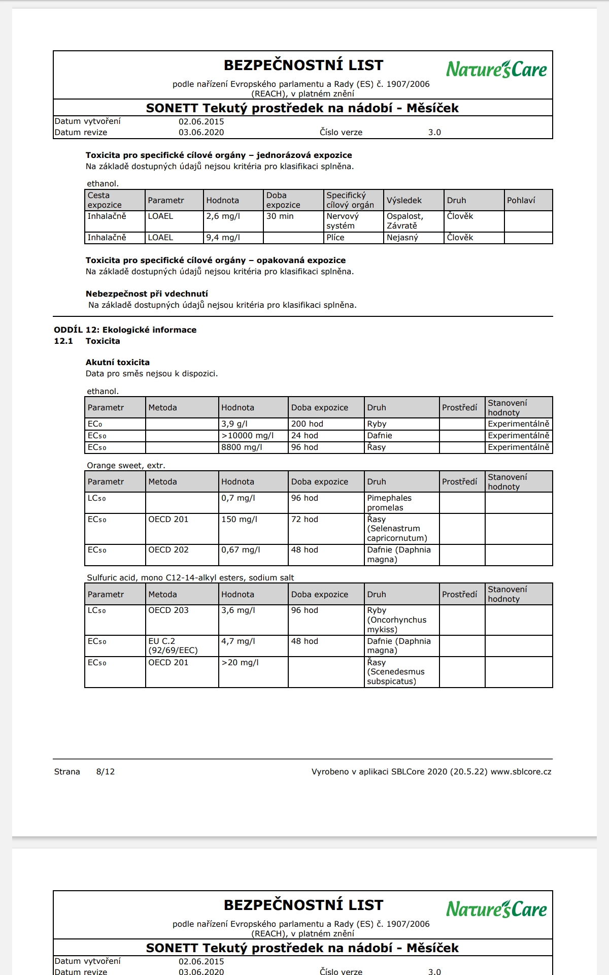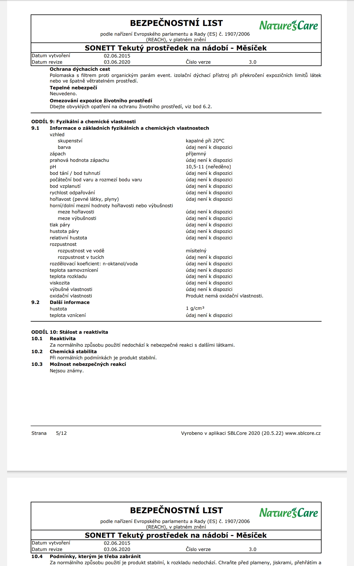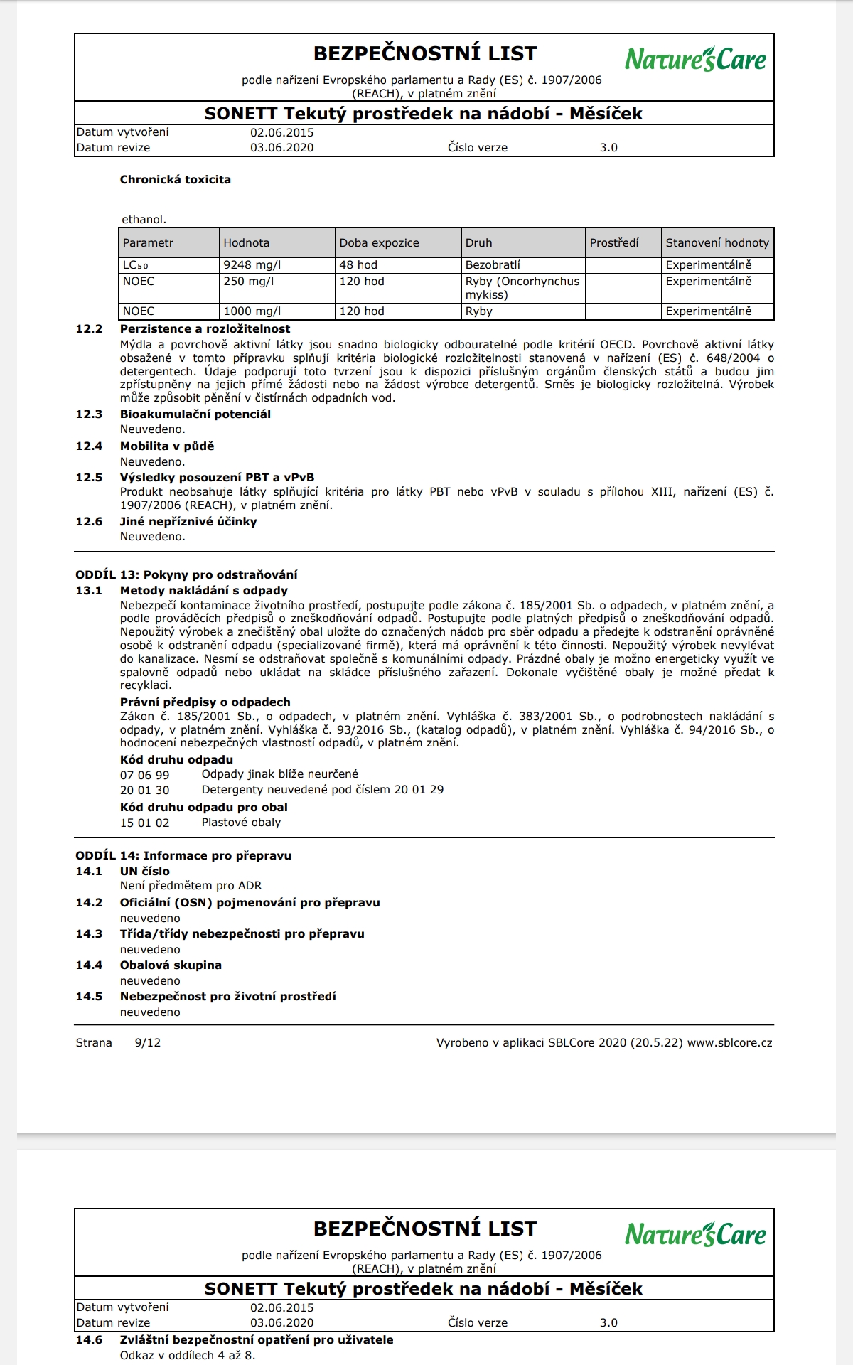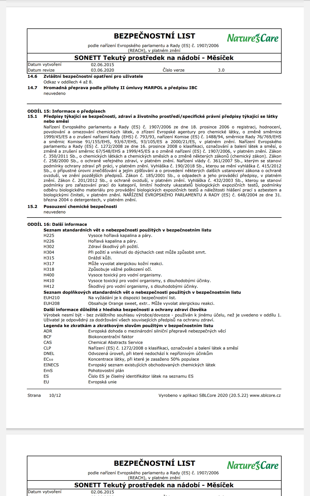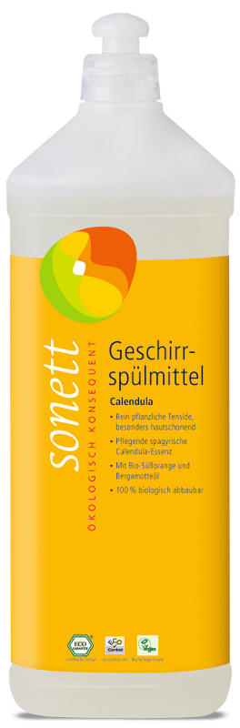 SONETT Tekutý prostředek na nádobí s měsíčkem 1l Sonett Tekutý prostředek na ruční mytí nádobí s pečující a nádherně vonící esencí z měsíčku a čistě rostlinnými tensidy. Zvláště šetrný k pokožce rukou, vydatný a účinný.Speciální složení umožňuje snadno odstraňovat mastnotu a zaschlé zbytky jídla i při velmi tvrdé vodě.