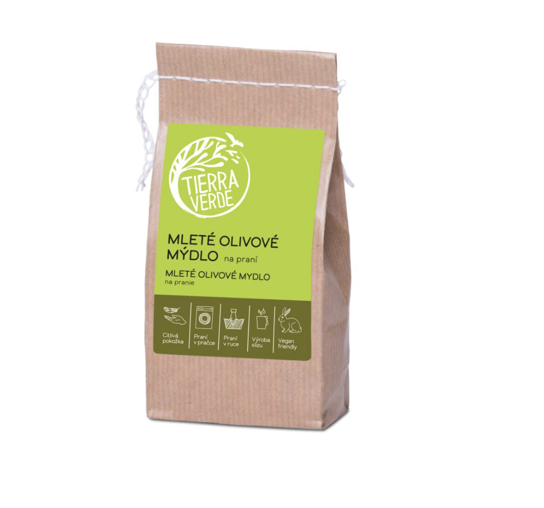 Mleté olivové mýdlo doporučujeme zejména pro praní dětského oblečení, jemného prádla (hedvábí, vlna) a oblečení pro osoby s citlivou pokožkou. Neobsahuje palmový olej ani živočišné složky.