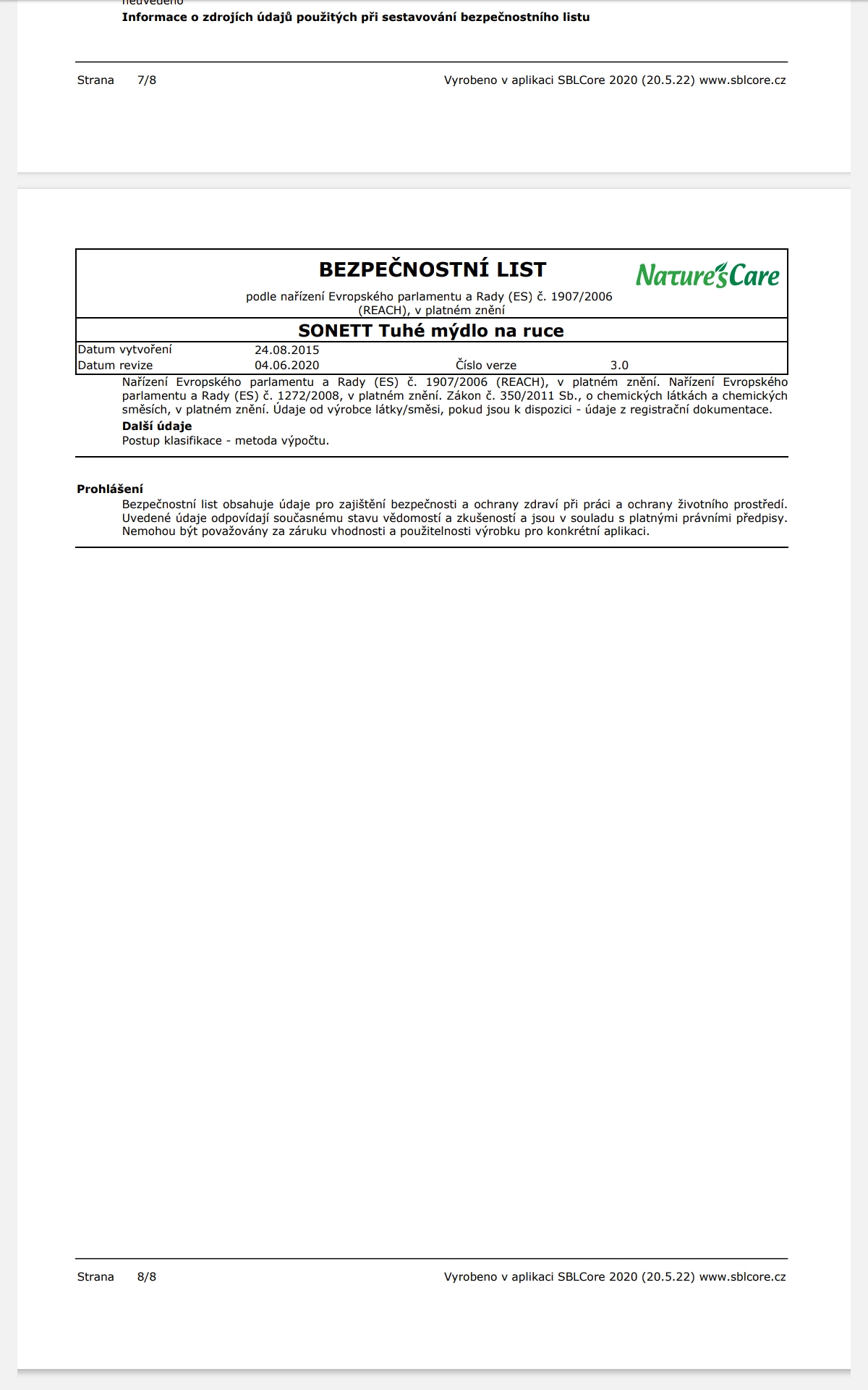 • Sonett odmítá používat přísady škodlivé pro životní prostředí a pro zdraví člověka.