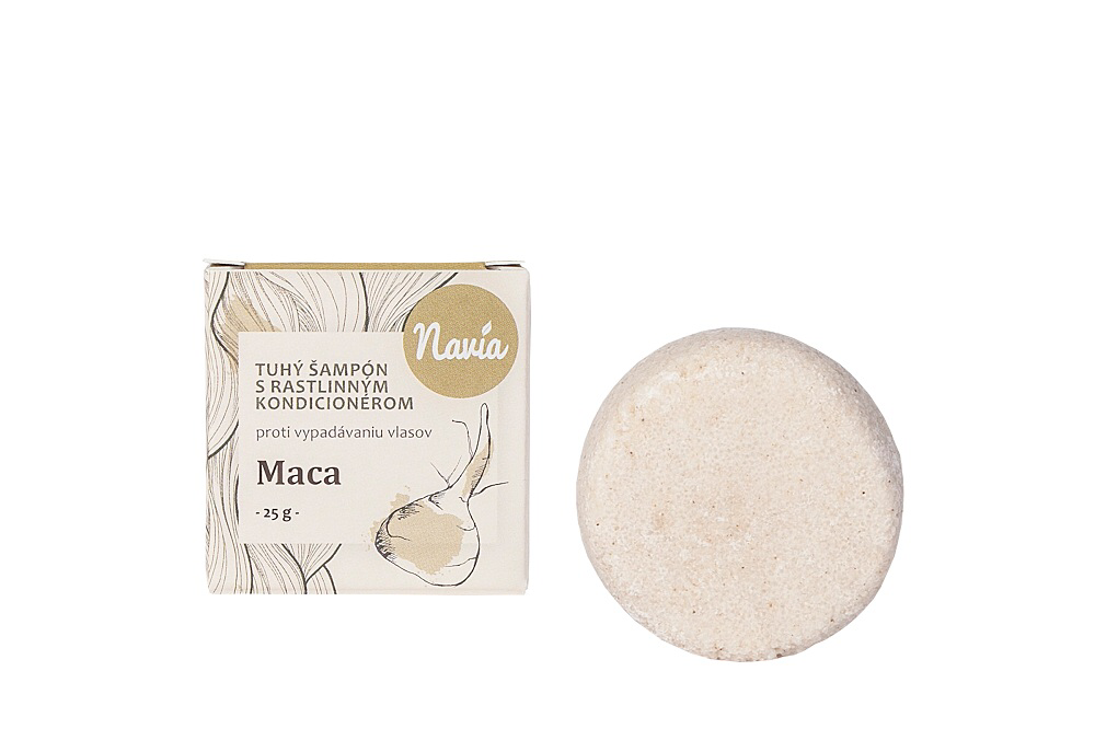 Koncentrovaný tuhý šampon s výtažkem z kořene MACA je určen pro všechny typy vlasů, zejména však při nadměrném vypadávání vlasů. Stimuluje růst vlasů, zabraňuje jejich vypadávání tím, že zlepšuje odolnost vlasových kořínků.