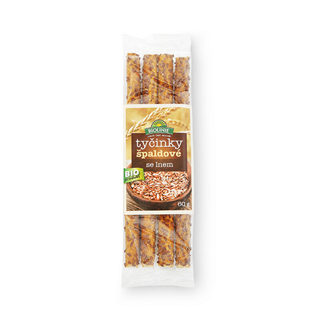 Tyčinky špaldové sypané lněným semínkem - prvotřídní kombinace superfood. Tyčinky špaldové sypané lněným semínkem v sobě kloubí výjimečnou chuť i vůni pšenice špaldy a lněného semínka. Spojením obou získáte "supertyčinky". Bez výčitek si je dejte k vínu, pivu či oblíbenému filmu. A nezapomeňte na děti, jim budou také chutnat!