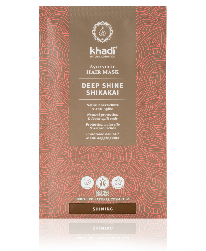 Khadi vlasová maska Extra lesk shikakai je součástí produktové řady „Shining" – v rámci setu se jednotlivé zářovost dávající přípravky doplňují, aby společně tvořily silný tým pro hydrataci, elasticitu, hebkost a lesk par excellence.