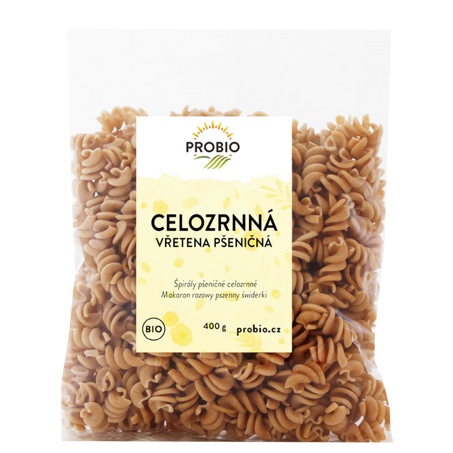 Bezvaječná pšeničná vřetena z celozrnné mouky, která obsahuje obal zrna a klíček. Jsou bohatá na vlákninu, bílkoviny a zasytí na dlouhou dobu. Vhodná jako příloha, do salátu, rychlých pánví apod.