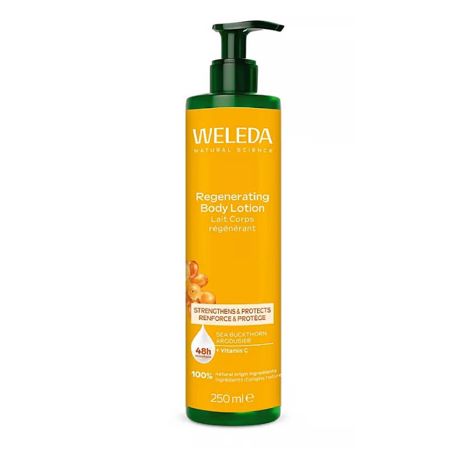 Rakytníkové regenerační tělové mléko od Weledy zklidňuje pokožku a zároveň chrání, regeneruje a posiluje kožní bariéru.