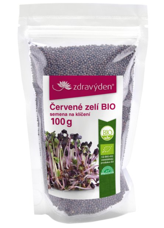 BIO semena červeného zelí Zdravý den® určená k celoročnímu klíčení. Jsou čerstvou a kvalitní zeleninou vhodnou k přímé konzumaci nebo jako přísada do rozličných jídel. Mají jemně kořeněnou chuť.